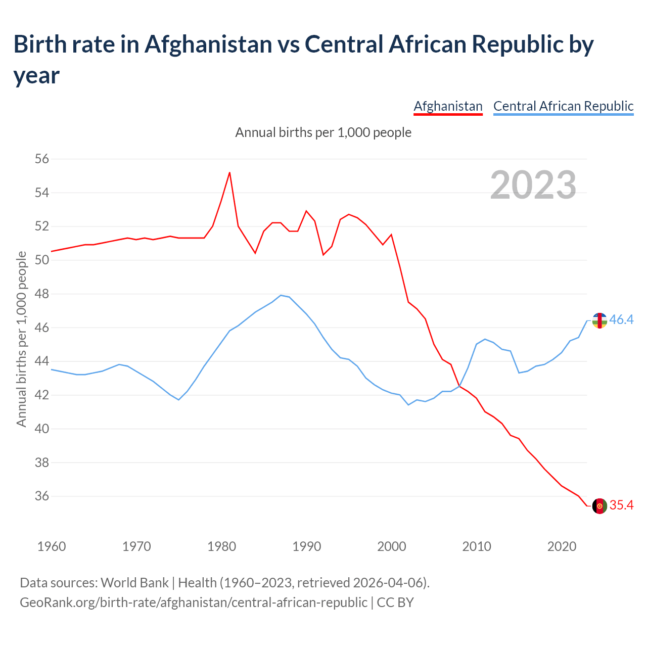 GeoRank.org/birth-rate/afghanistan/central-african-republic | CC BY