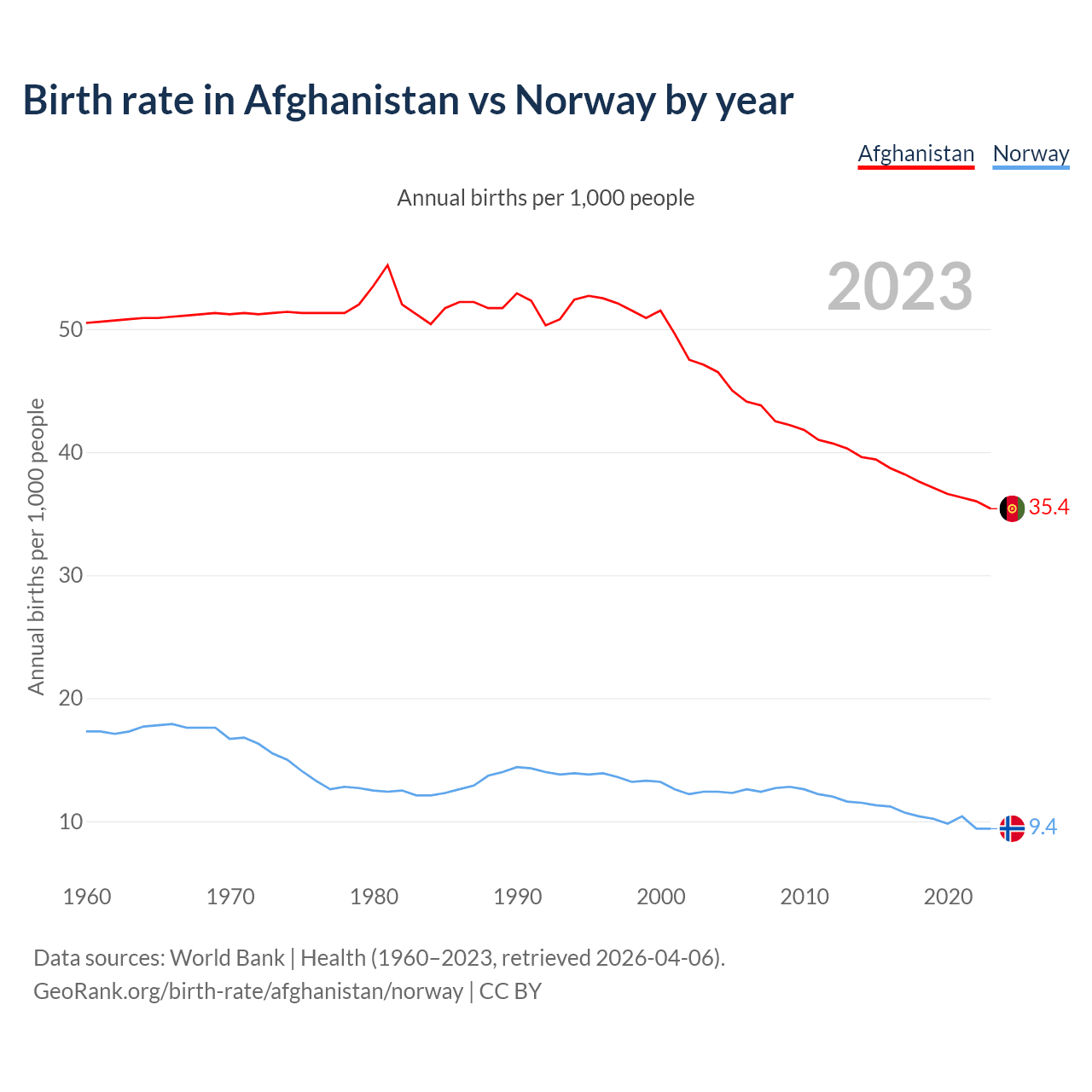 GeoRank.org/birth-rate/afghanistan/norway | CC BY