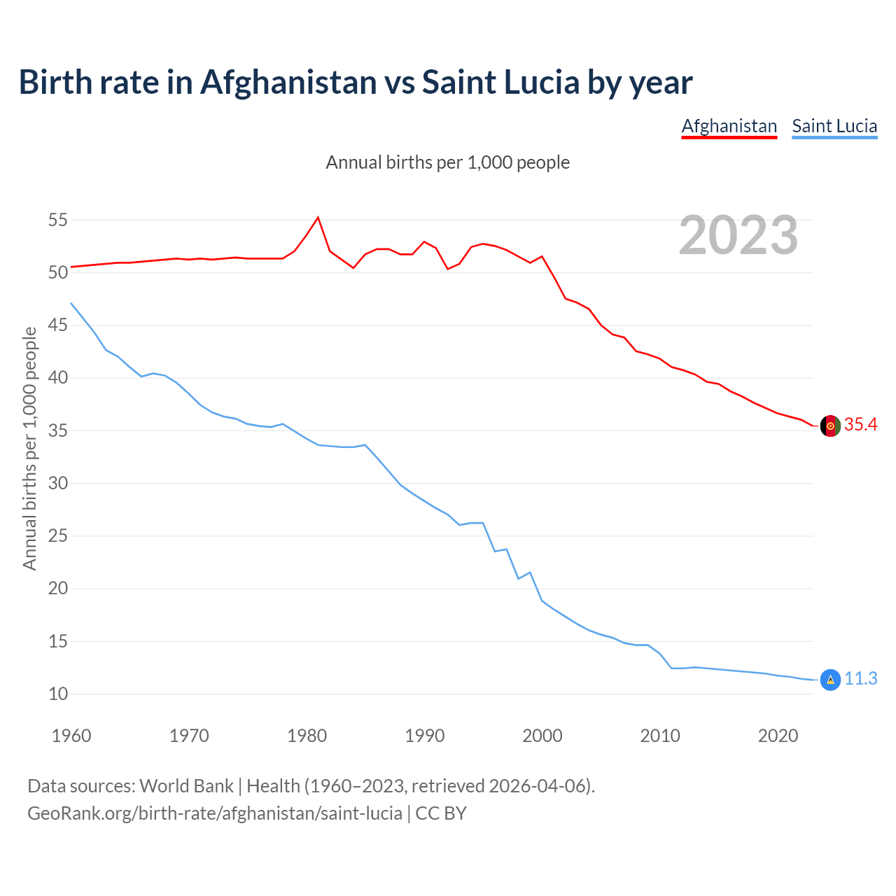 GeoRank.org/birth-rate/afghanistan/saint-lucia | CC BY