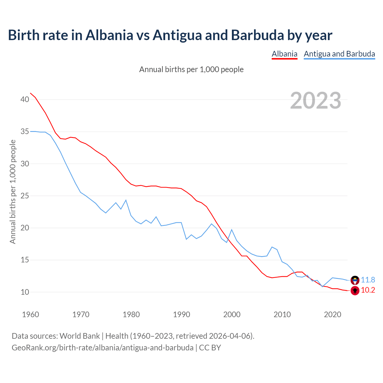 GeoRank.org/birth-rate/albania/antigua-and-barbuda | CC BY