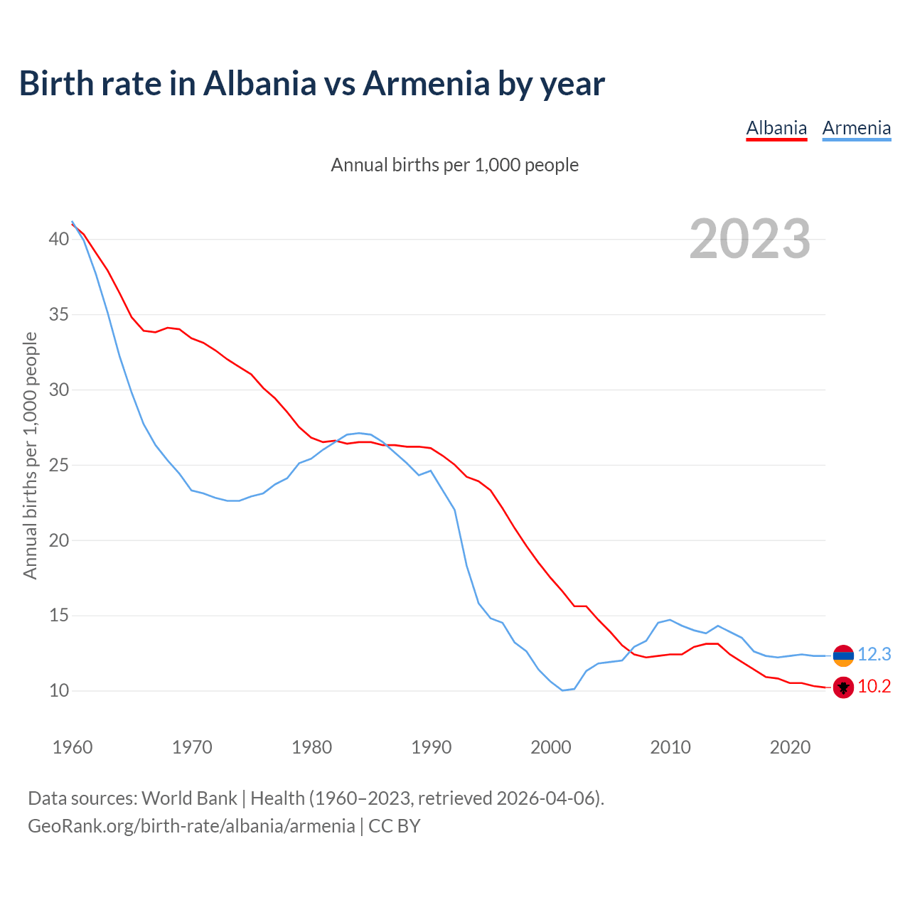 GeoRank.org/birth-rate/albania/armenia | CC BY