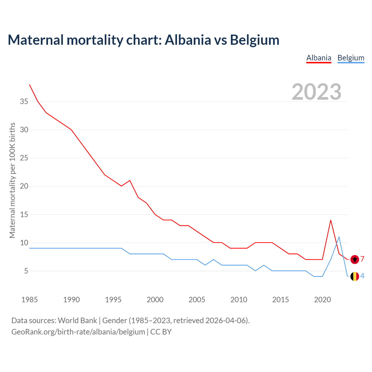 GeoRank.org/birth-rate/albania/belgium | CC BY