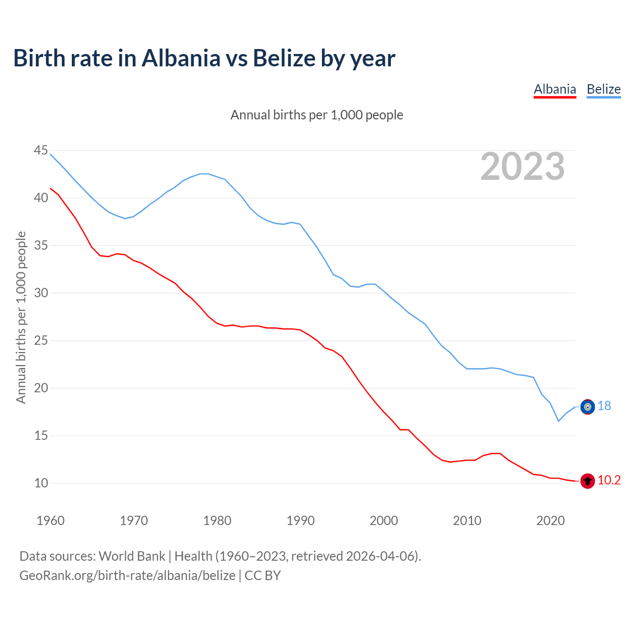 GeoRank.org/birth-rate/albania/belize | CC BY