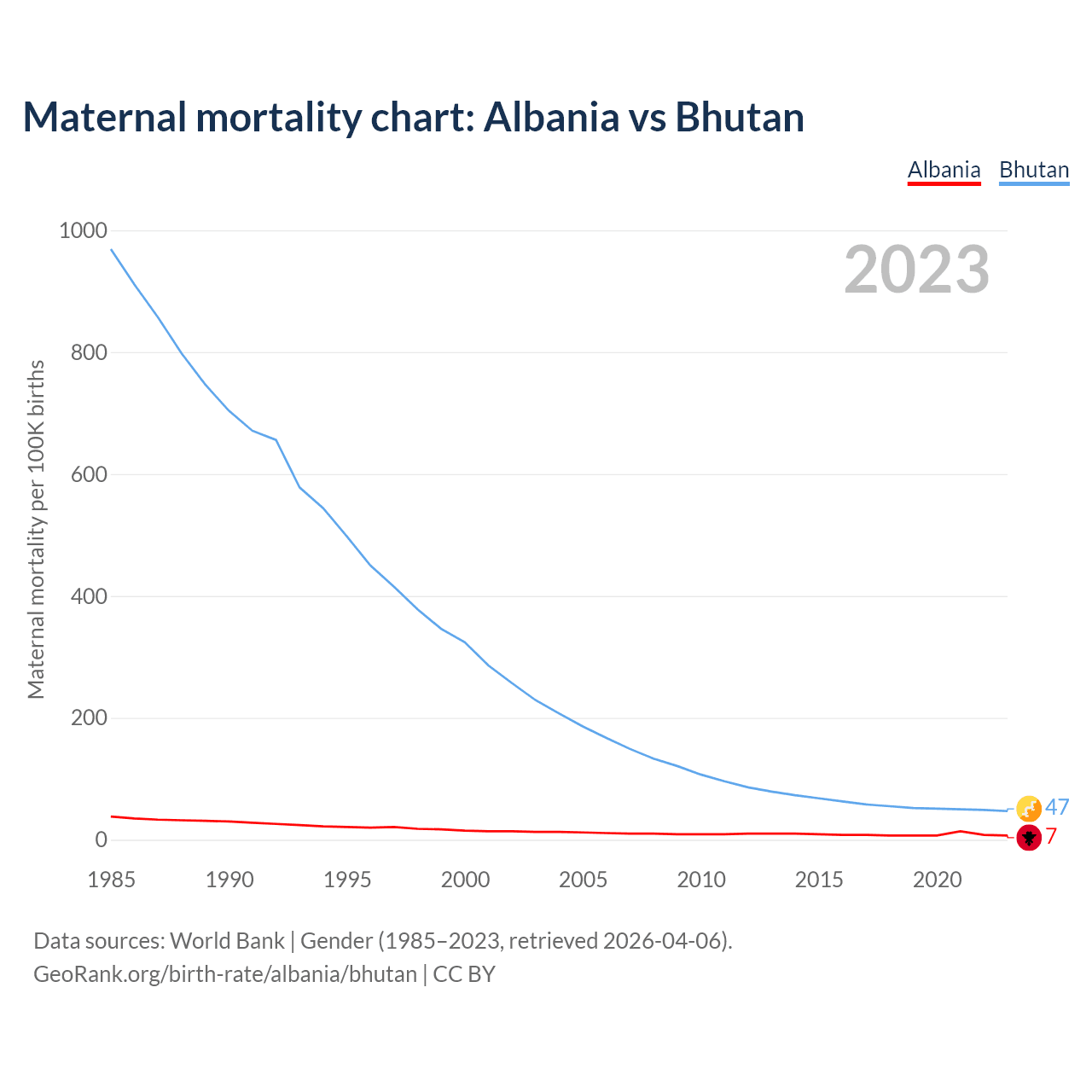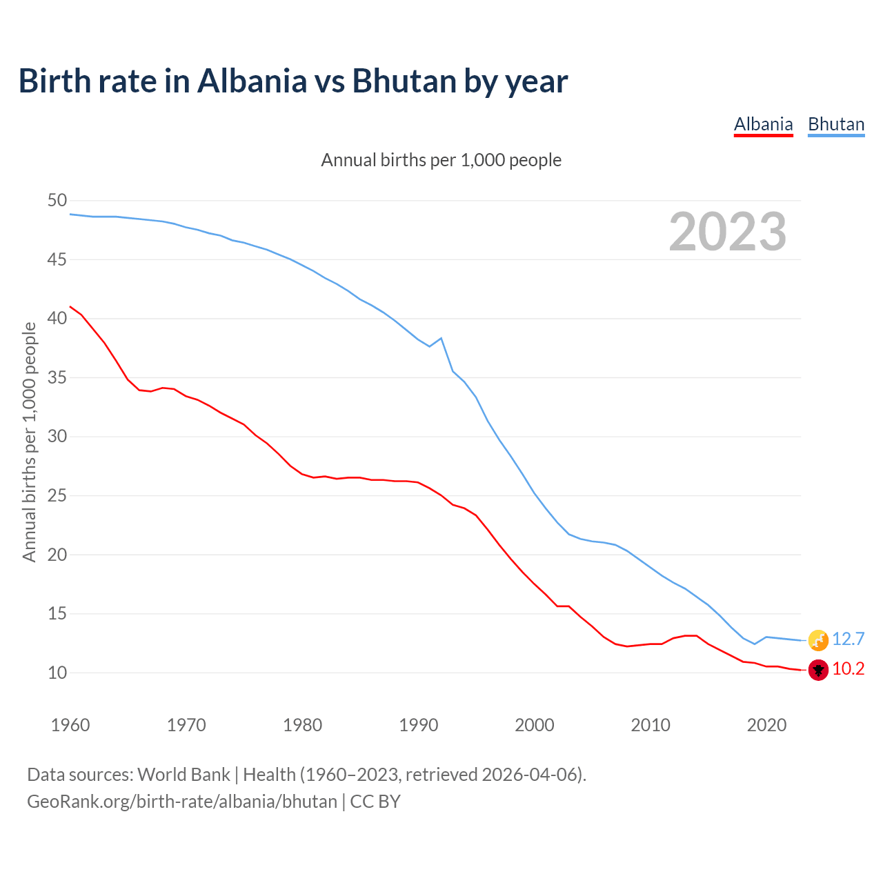 GeoRank.org/birth-rate/albania/bhutan | CC BY