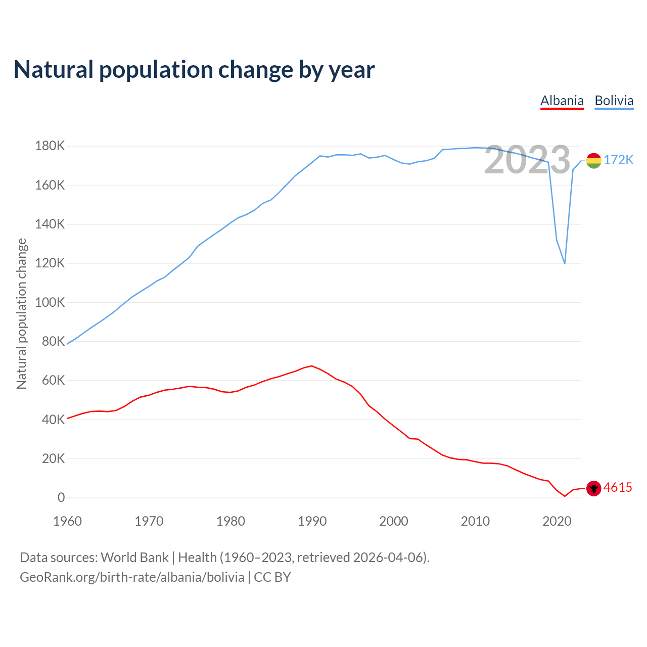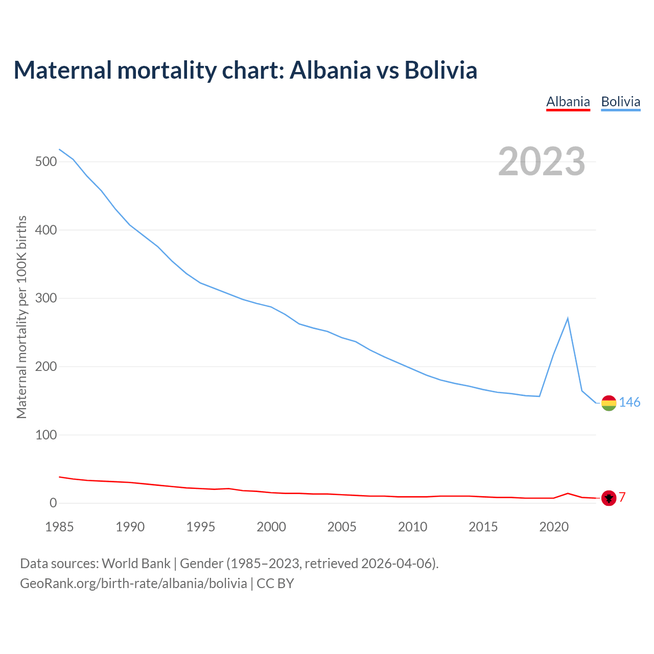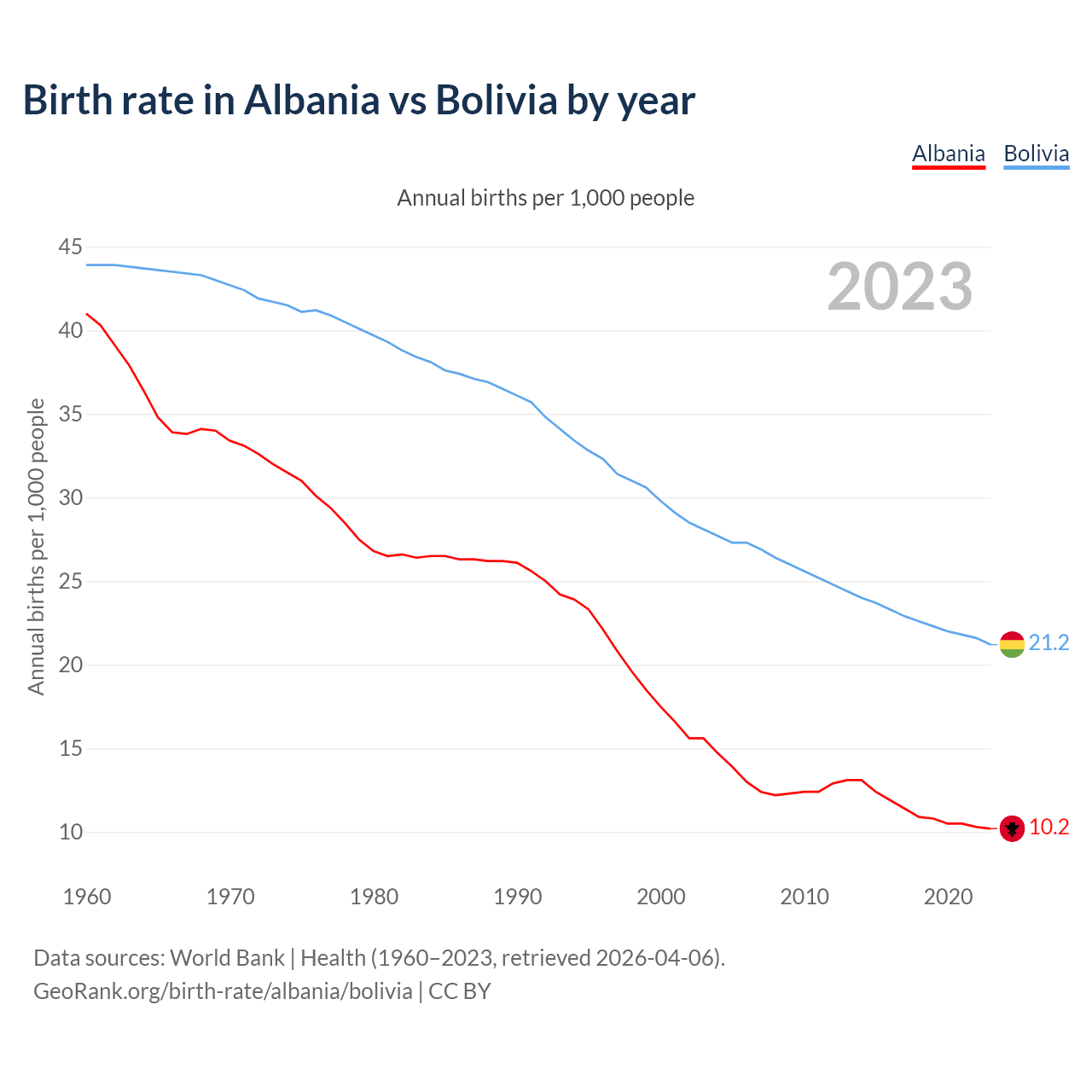 GeoRank.org/birth-rate/albania/bolivia | CC BY