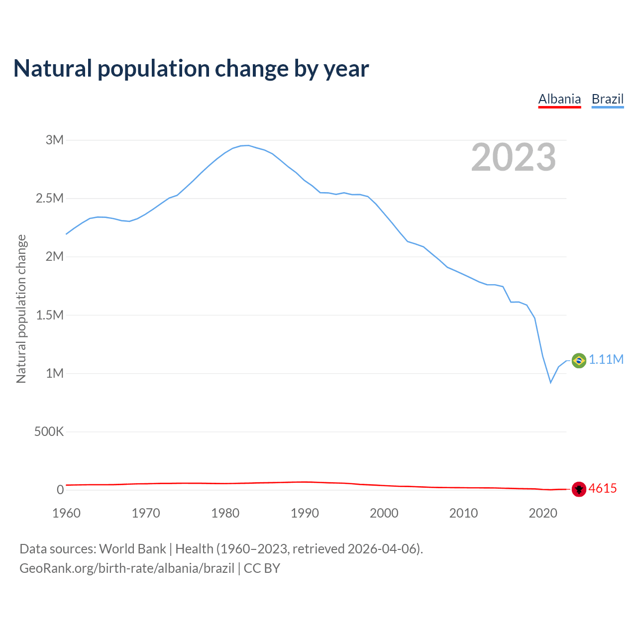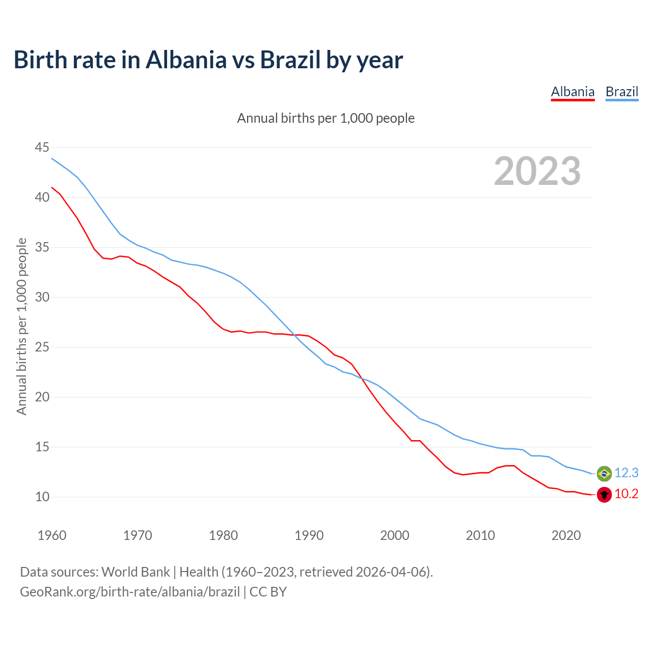 GeoRank.org/birth-rate/albania/brazil | CC BY