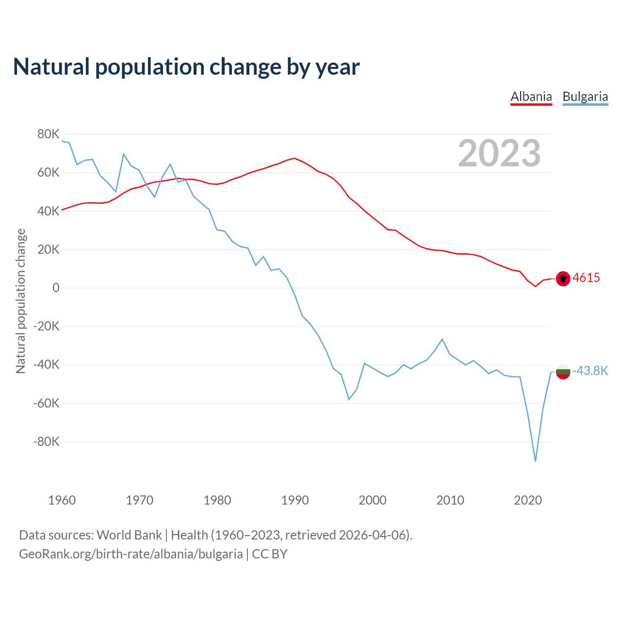 GeoRank.org/birth-rate/albania/bulgaria | CC BY