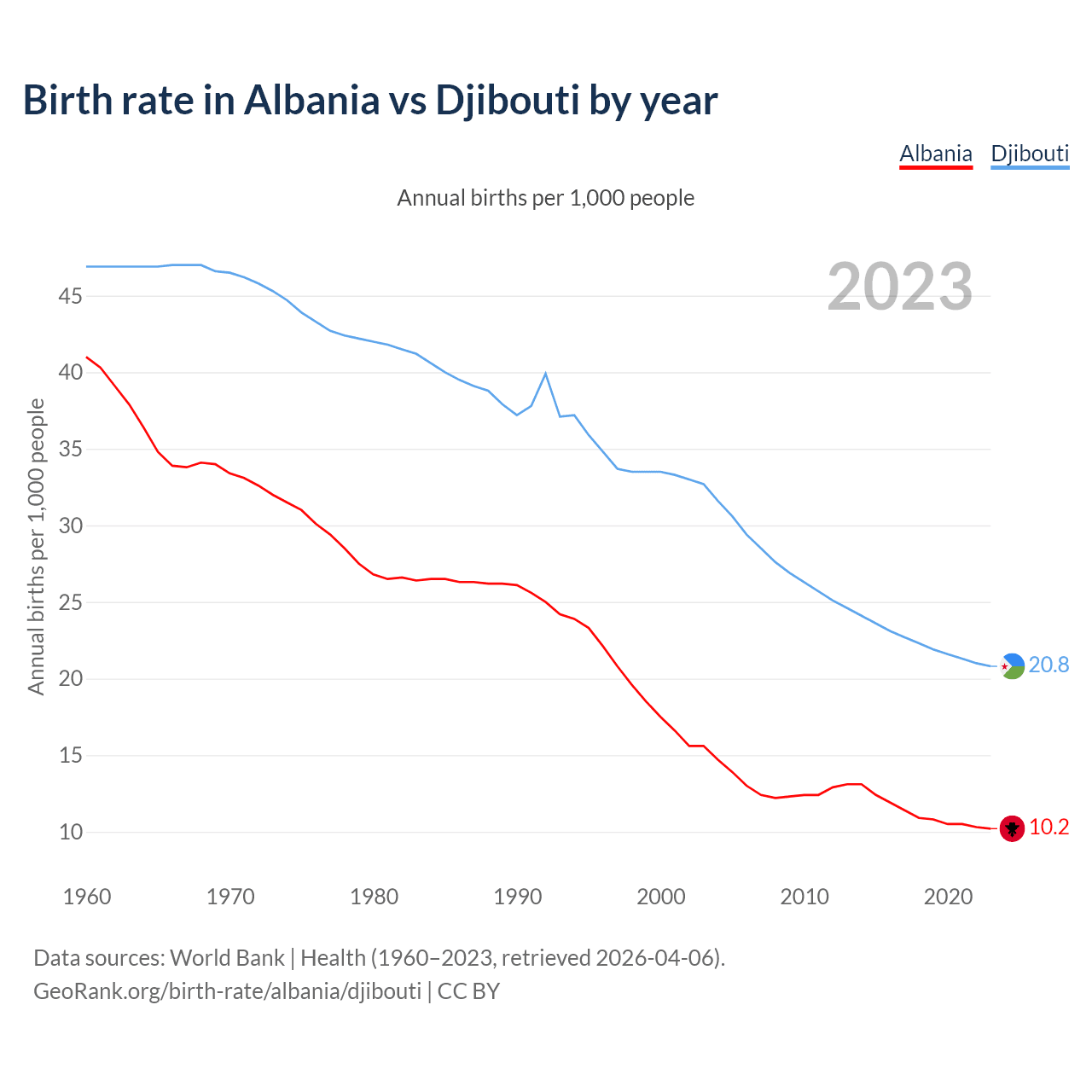 GeoRank.org/birth-rate/albania/djibouti | CC BY
