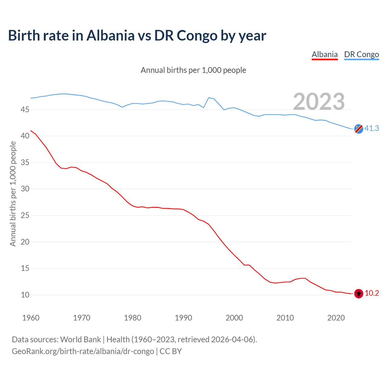 GeoRank.org/birth-rate/albania/dr-congo | CC BY