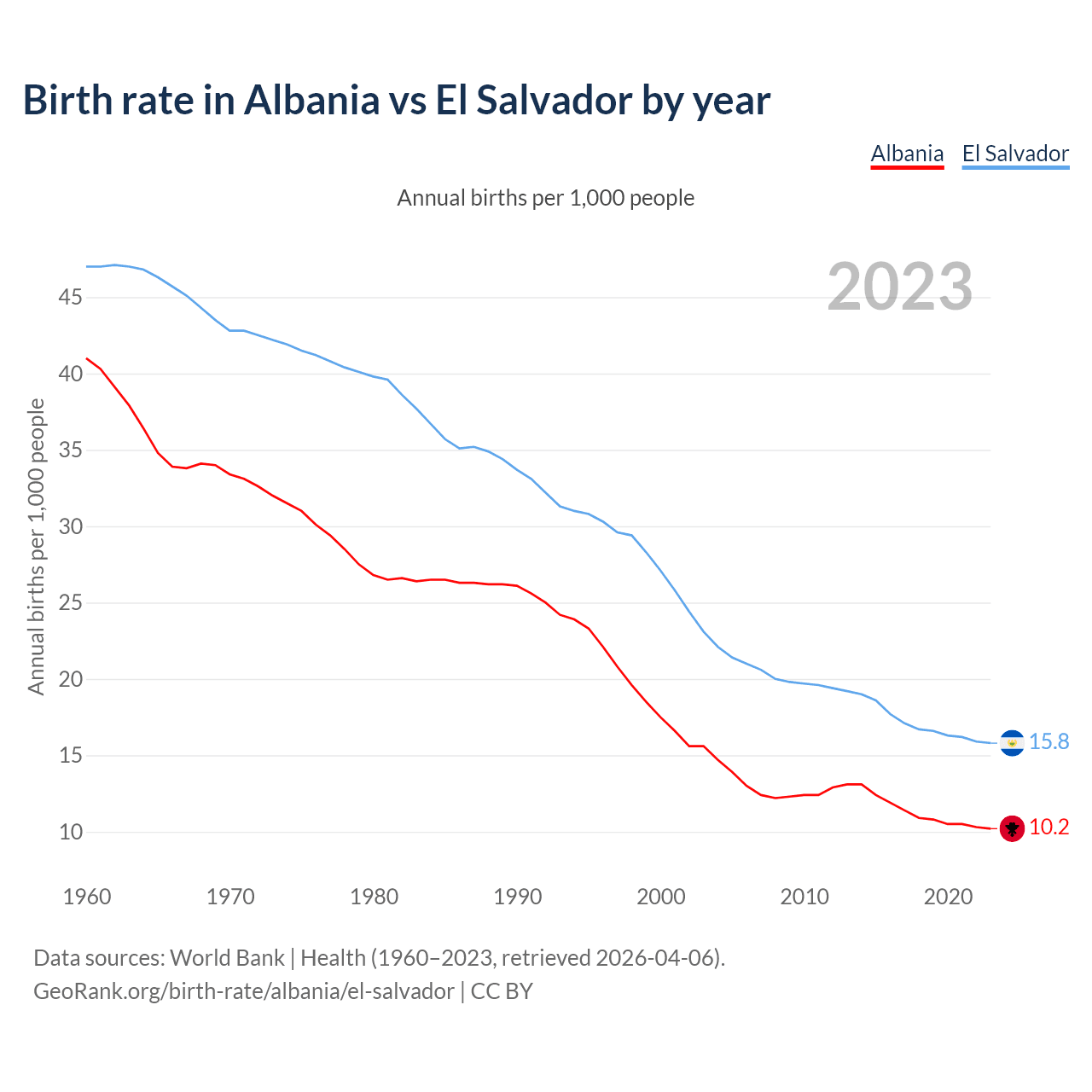 GeoRank.org/birth-rate/albania/el-salvador | CC BY