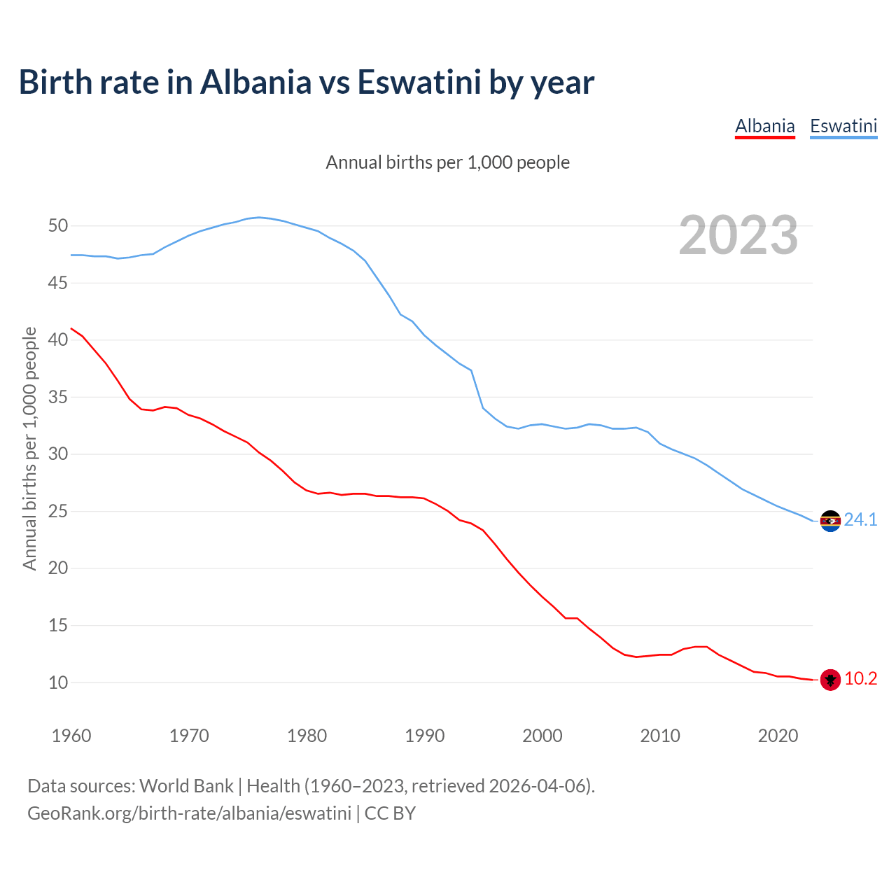 GeoRank.org/birth-rate/albania/eswatini | CC BY