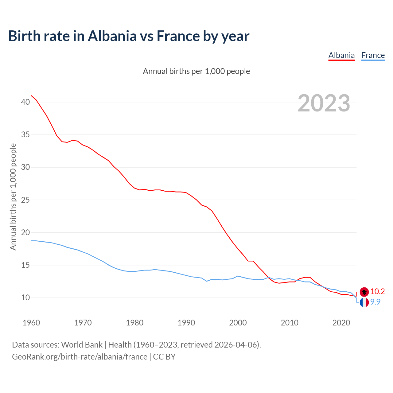 GeoRank.org/birth-rate/albania/france | CC BY