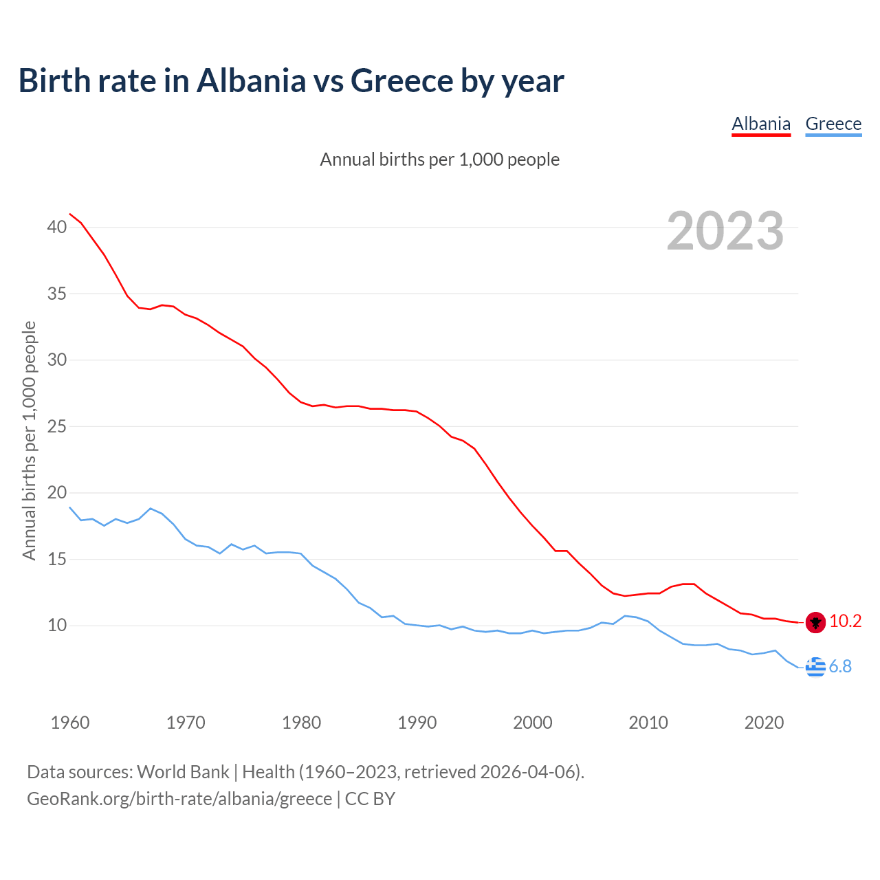 GeoRank.org/birth-rate/albania/greece | CC BY