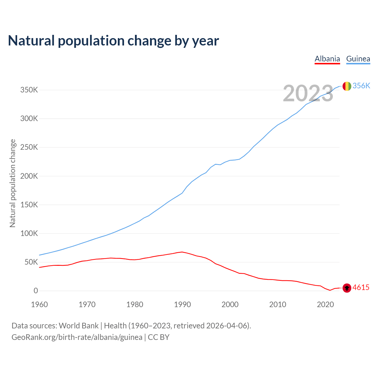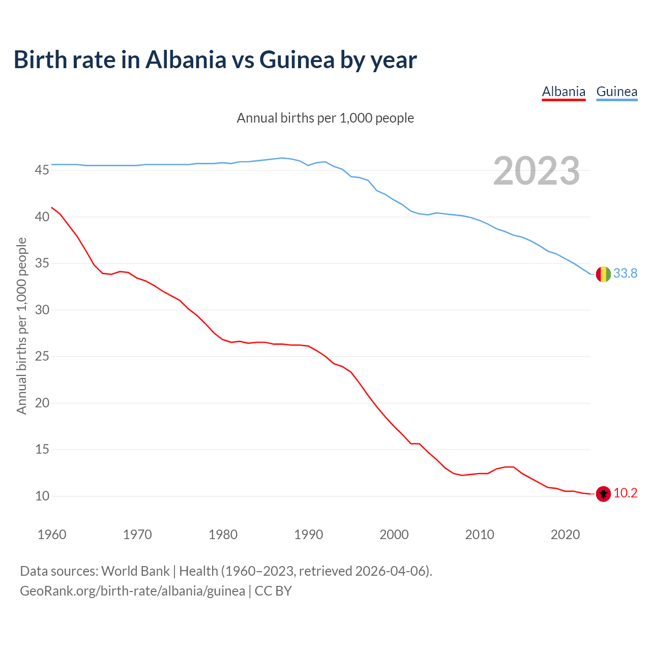 GeoRank.org/birth-rate/albania/guinea | CC BY