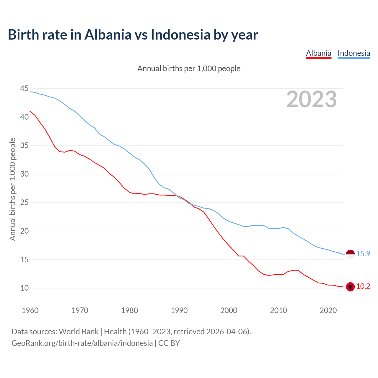 GeoRank.org/birth-rate/albania/indonesia | CC BY