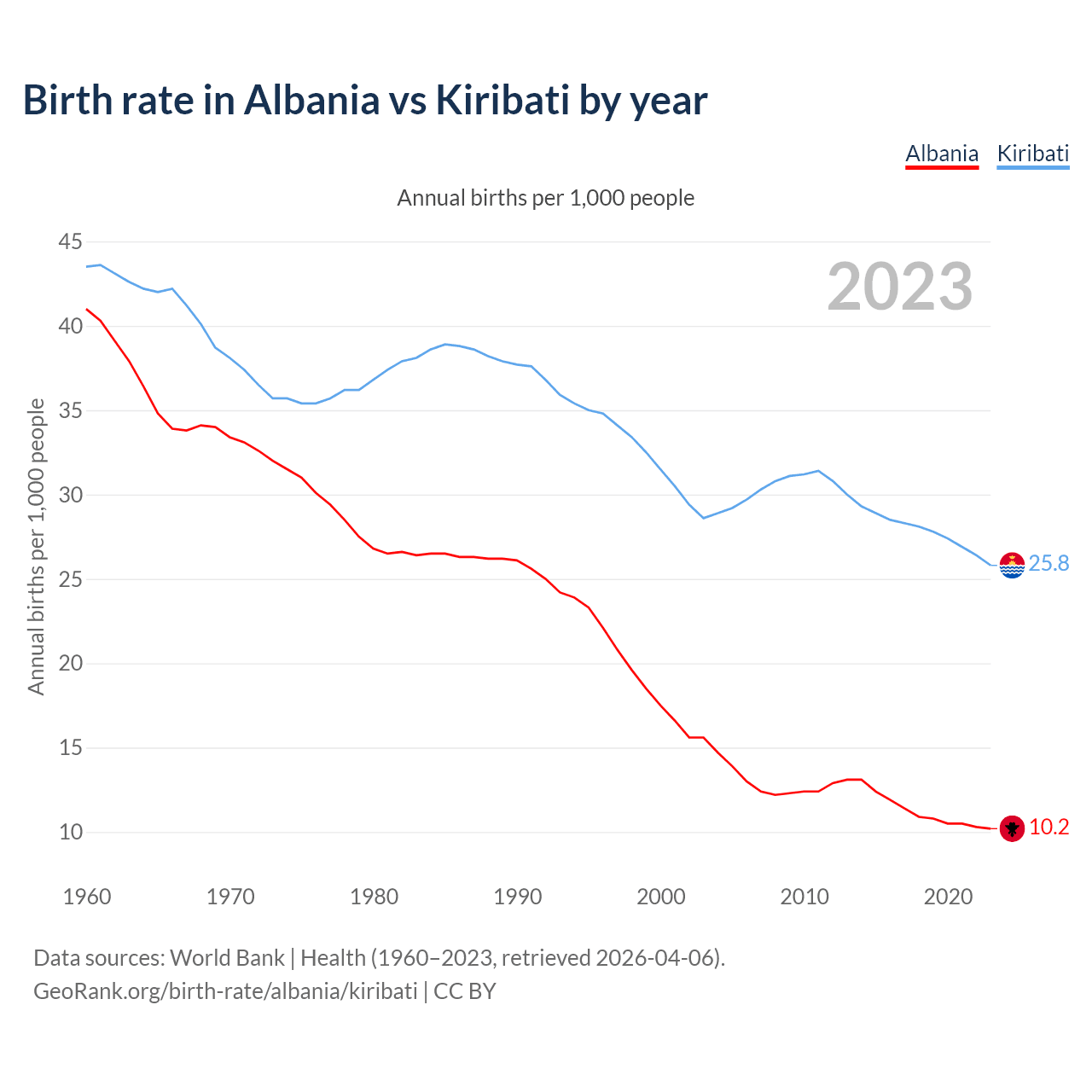 GeoRank.org/birth-rate/albania/kiribati | CC BY