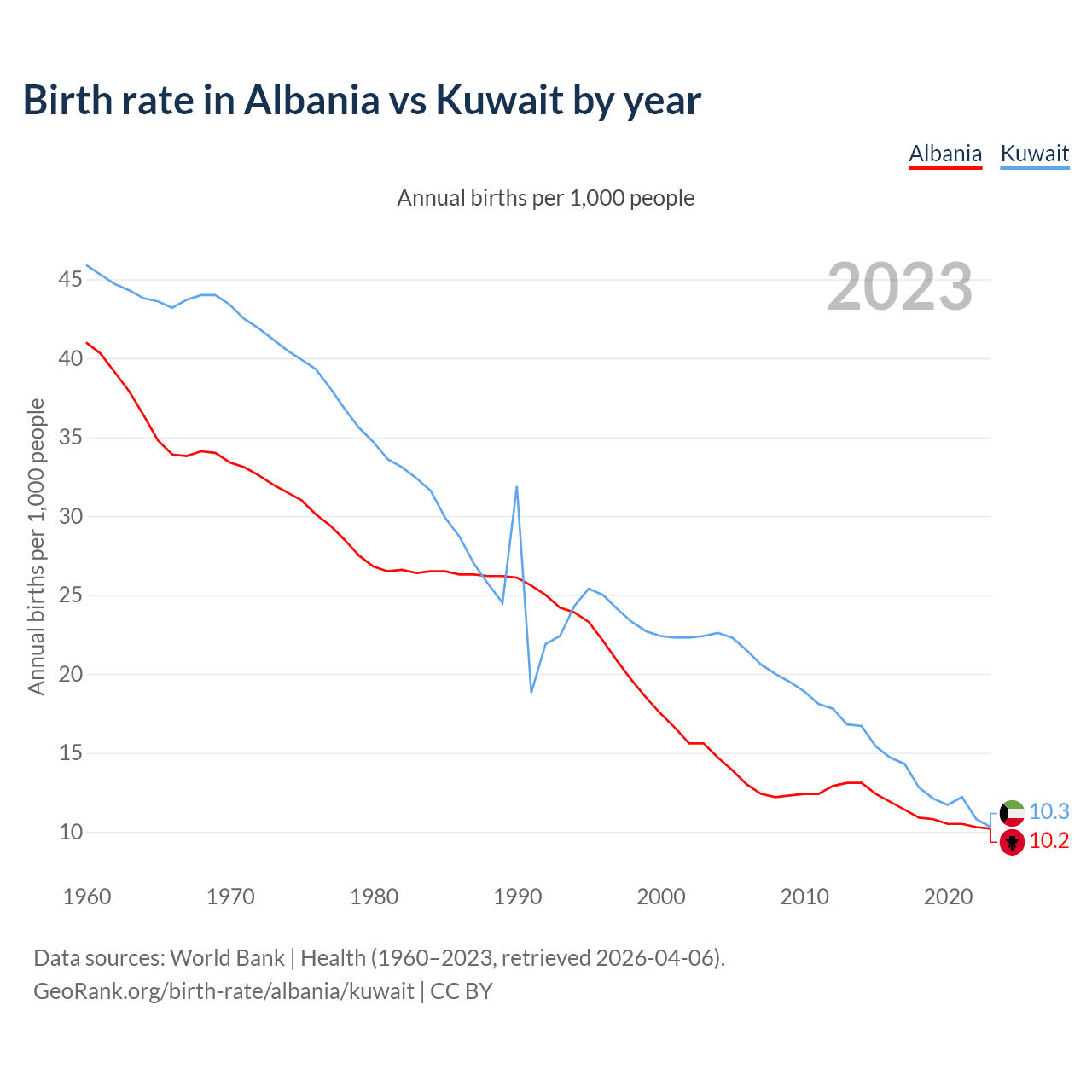 GeoRank.org/birth-rate/albania/kuwait | CC BY