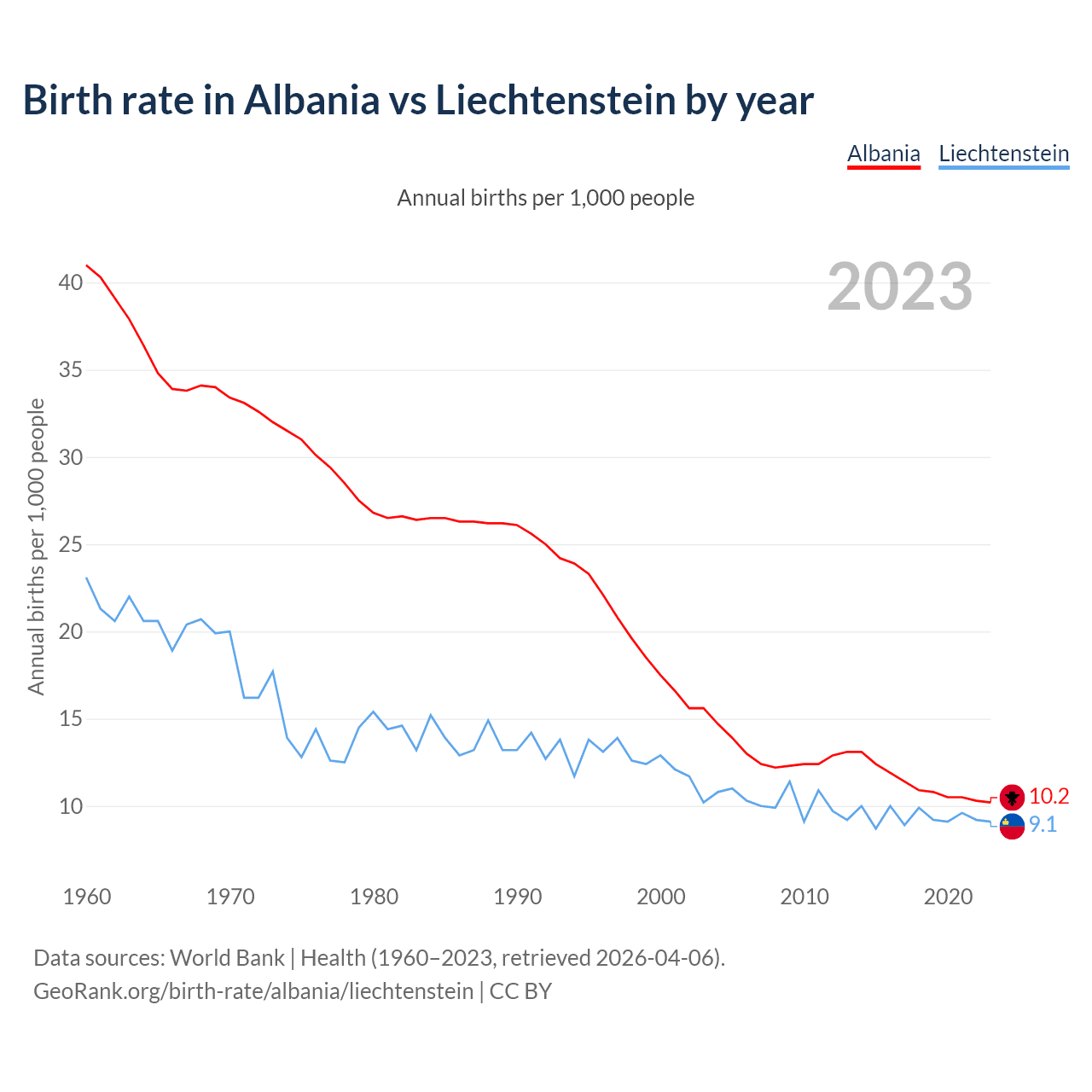 GeoRank.org/birth-rate/albania/liechtenstein | CC BY
