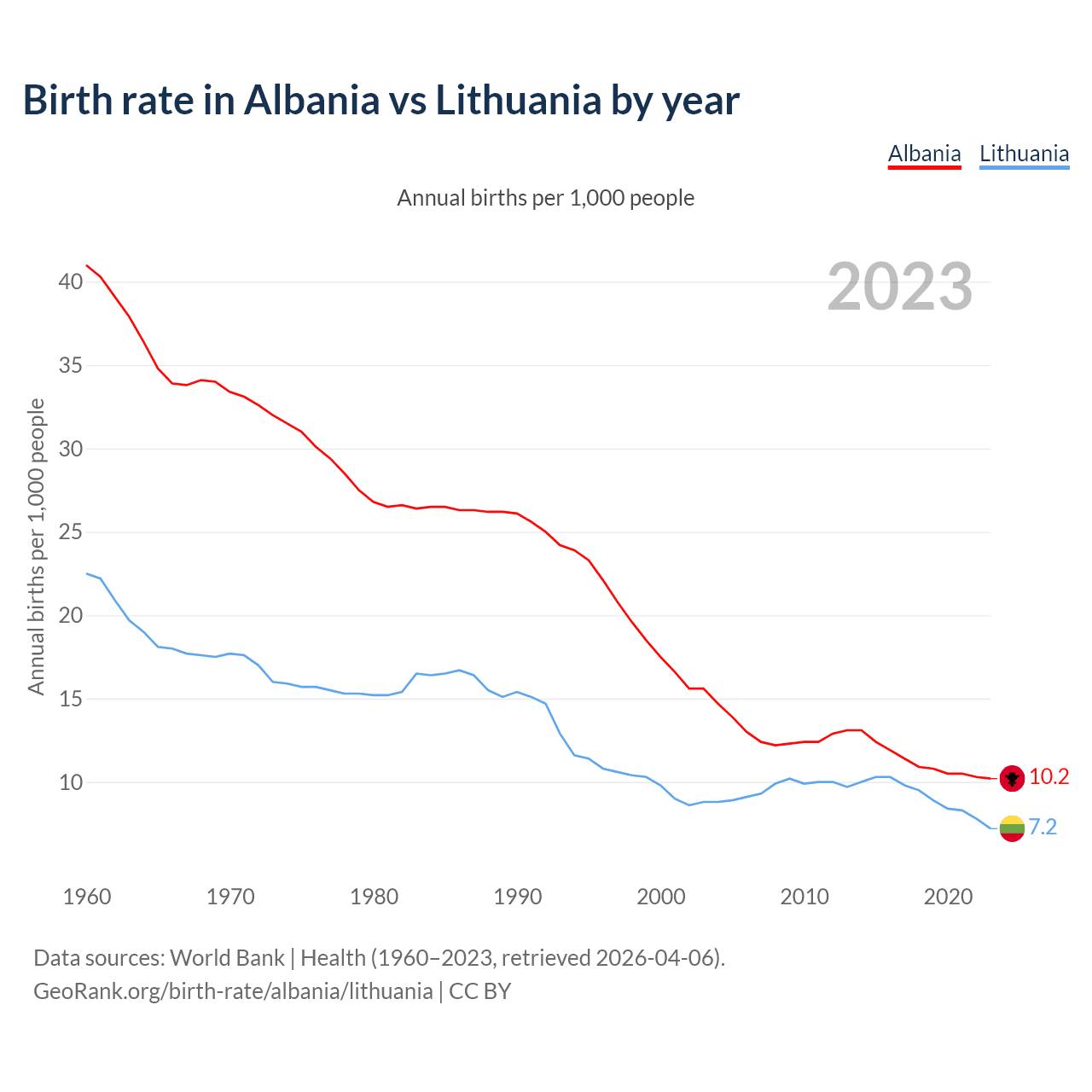 GeoRank.org/birth-rate/albania/lithuania | CC BY