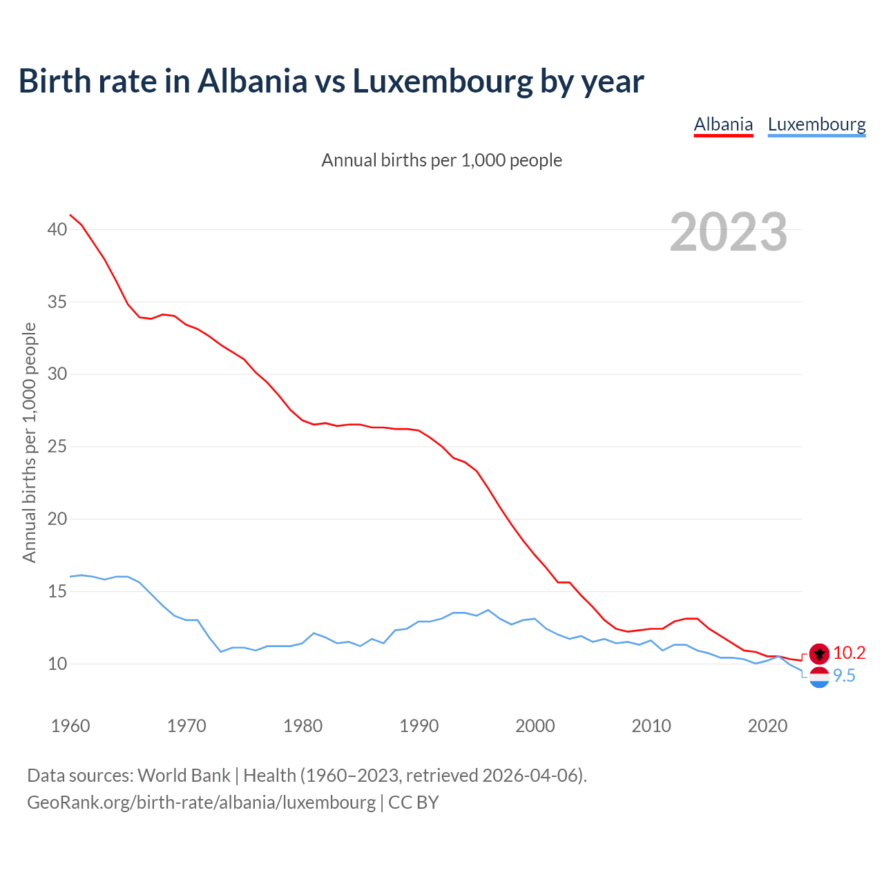 GeoRank.org/birth-rate/albania/luxembourg | CC BY