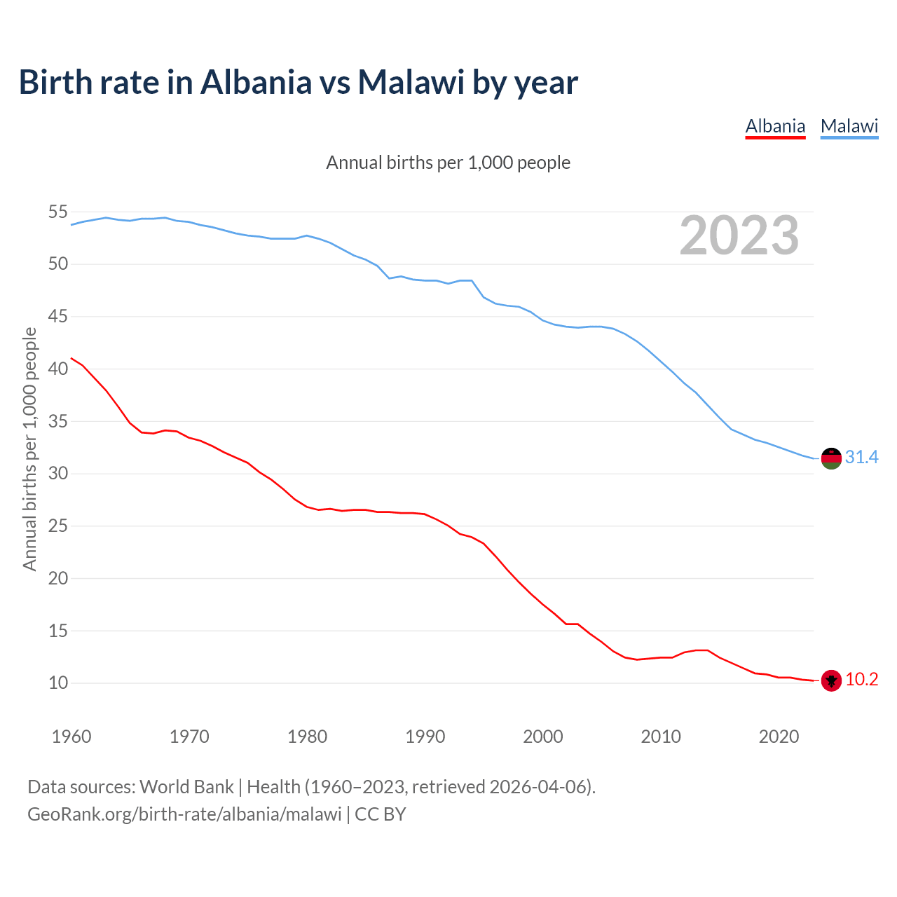 GeoRank.org/birth-rate/albania/malawi | CC BY