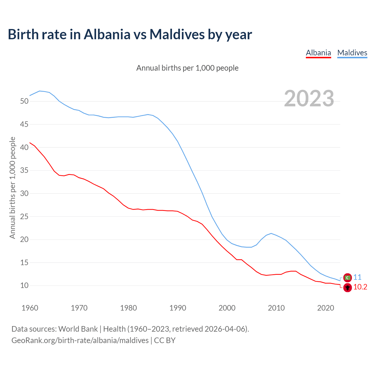 GeoRank.org/birth-rate/albania/maldives | CC BY