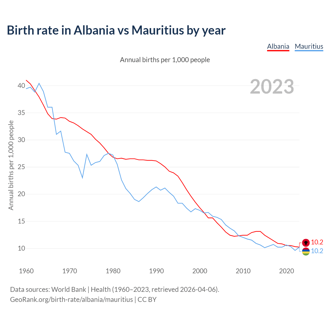 GeoRank.org/birth-rate/albania/mauritius | CC BY