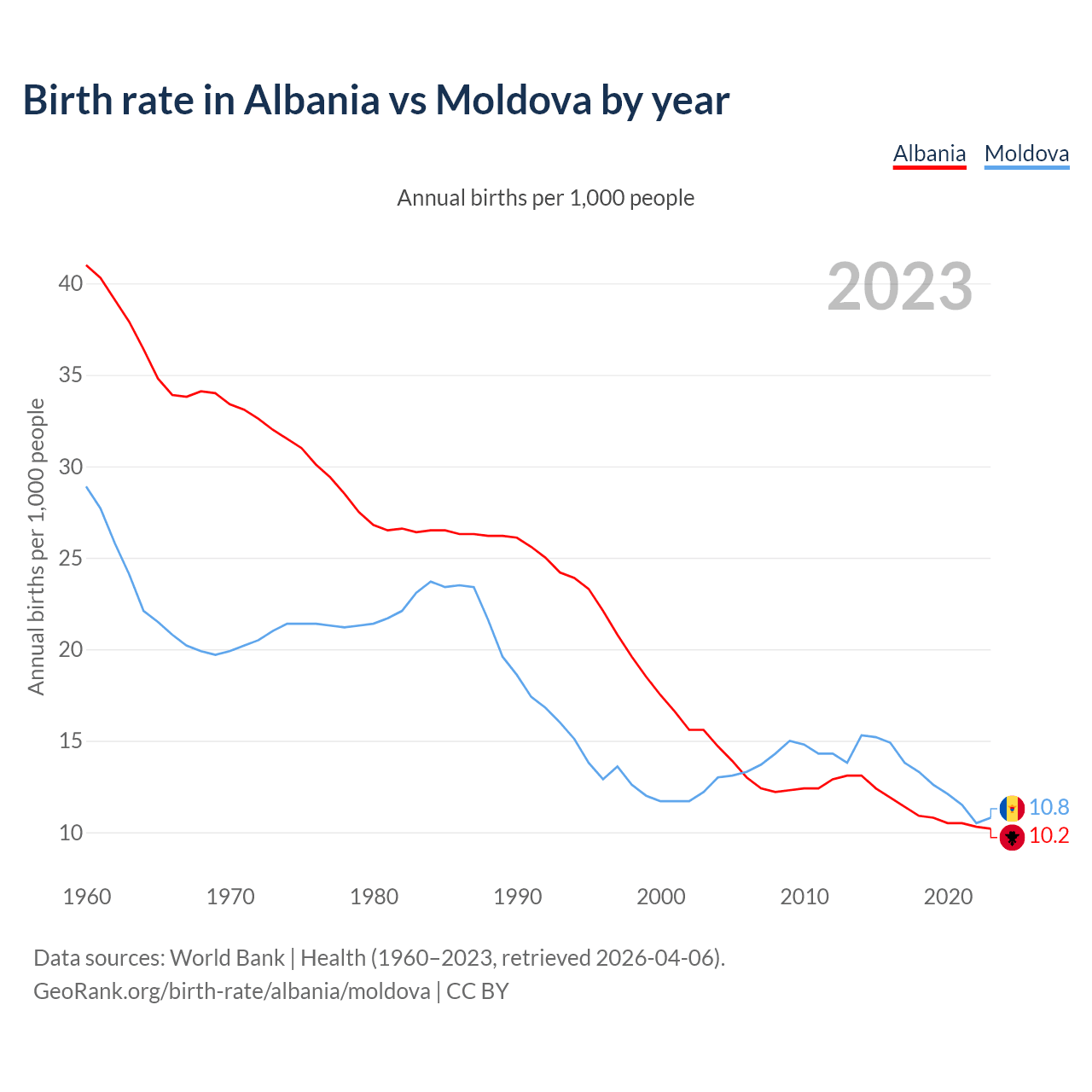GeoRank.org/birth-rate/albania/moldova | CC BY