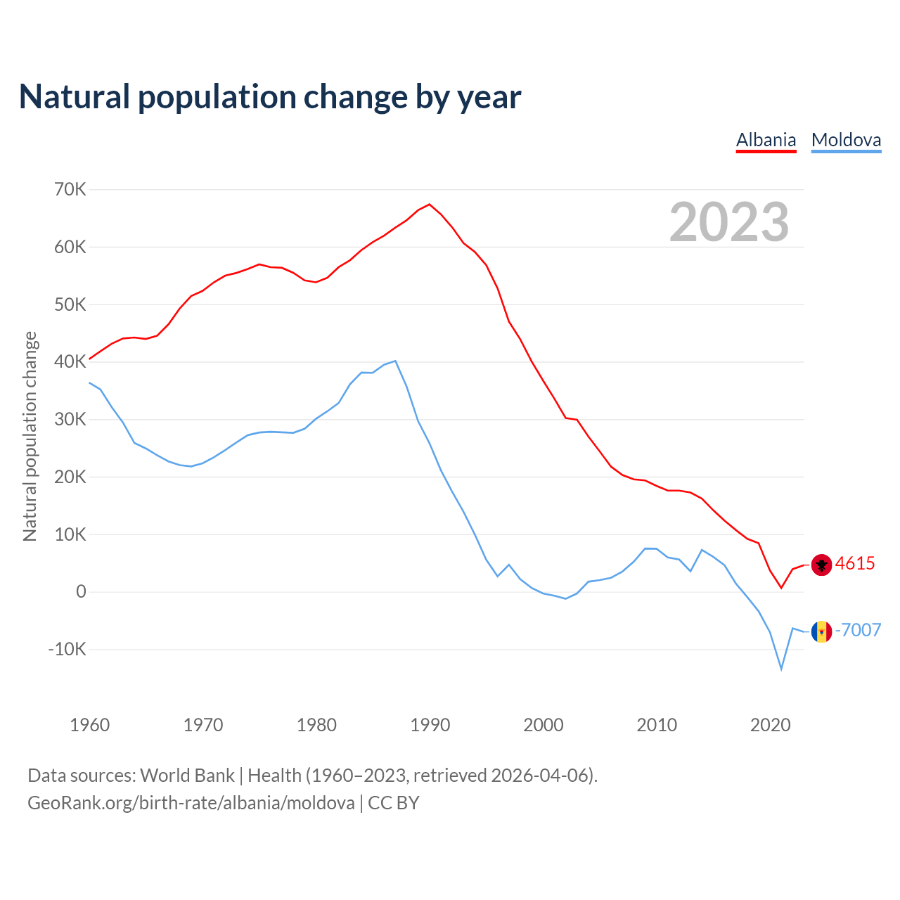 - Albania is ranked 143/196 by birth rate compared to 138/196 for Moldova.