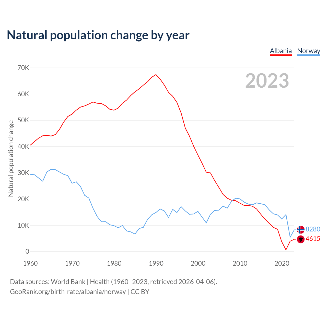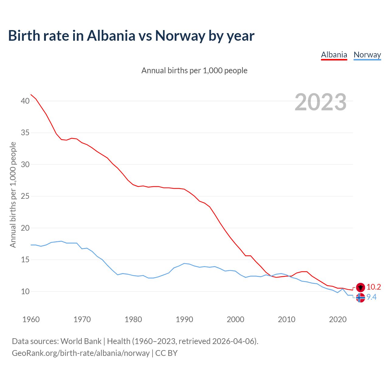 GeoRank.org/birth-rate/albania/norway | CC BY