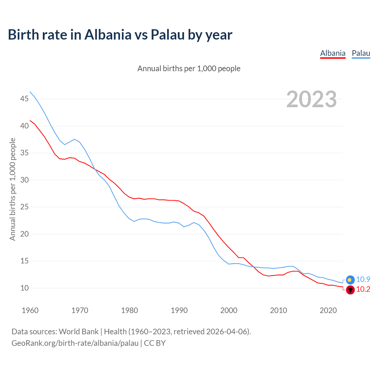 GeoRank.org/birth-rate/albania/palau | CC BY