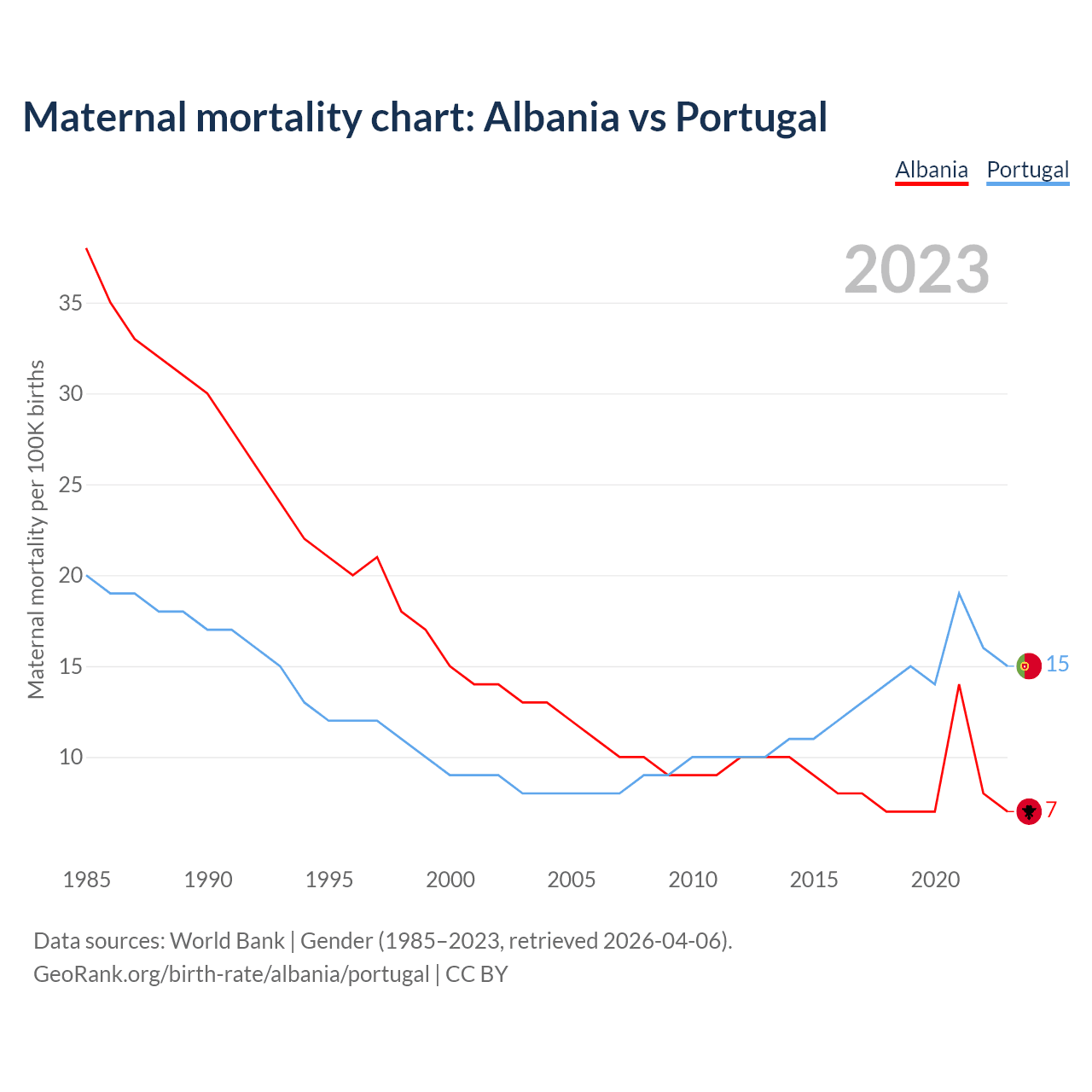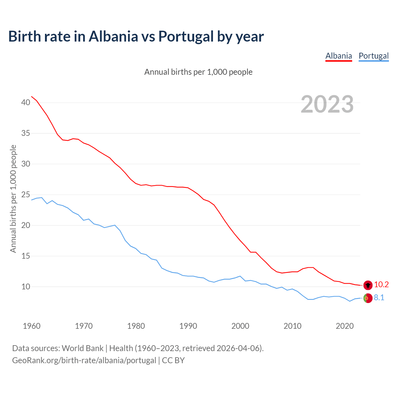 GeoRank.org/birth-rate/albania/portugal | CC BY