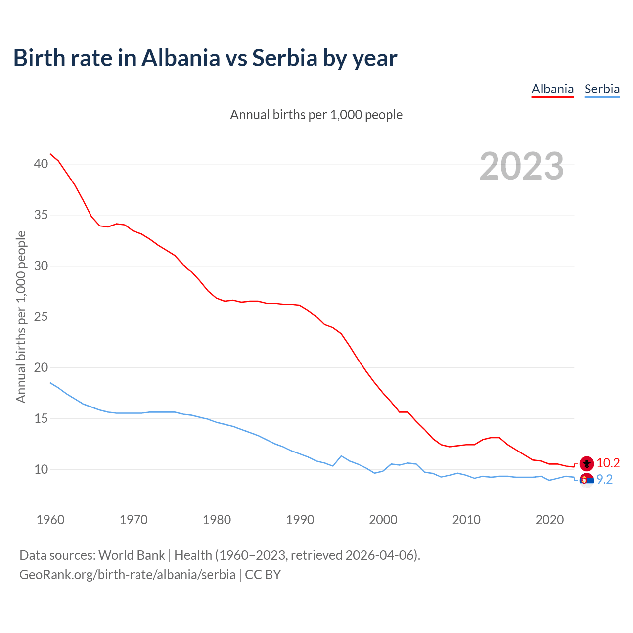 GeoRank.org/birth-rate/albania/serbia | CC BY