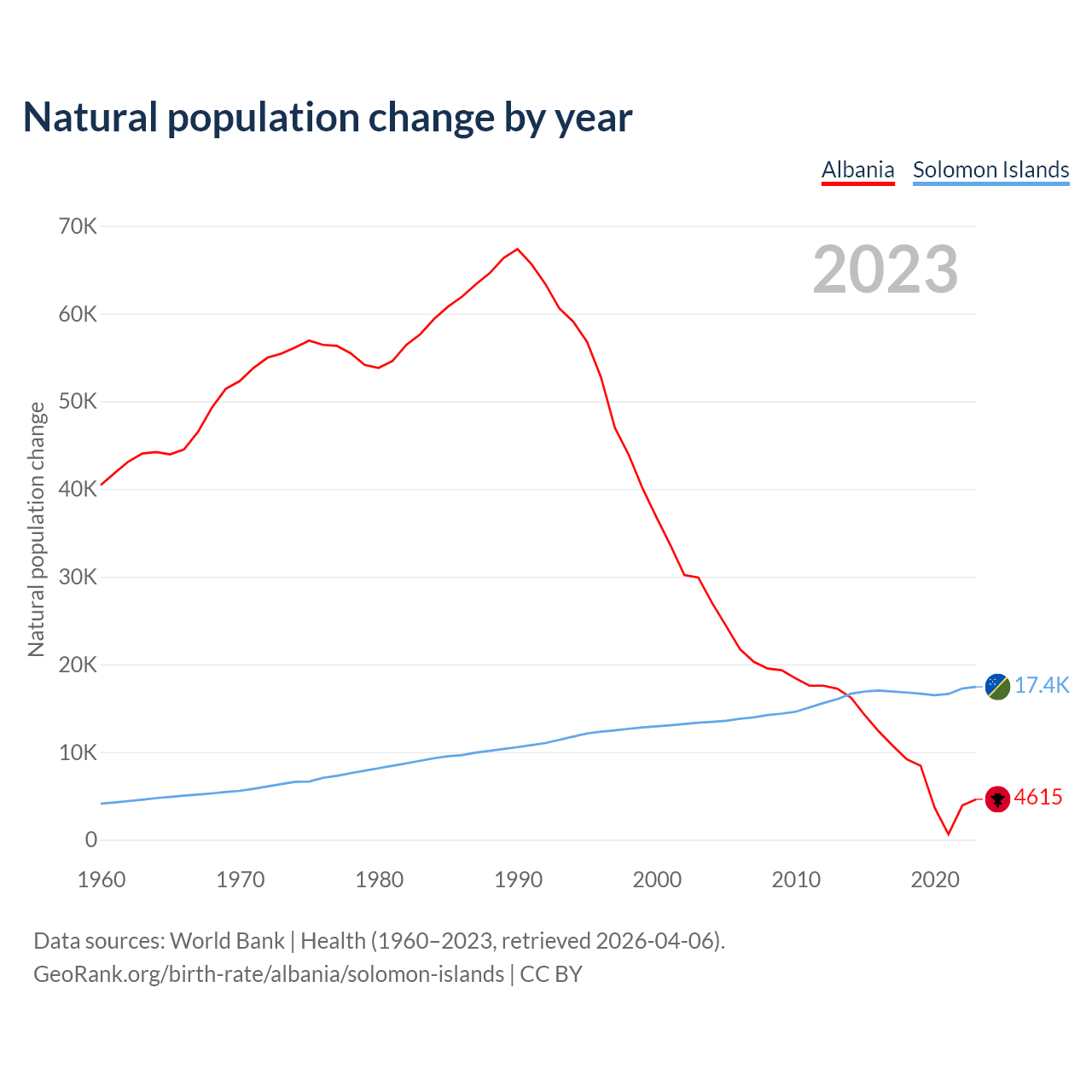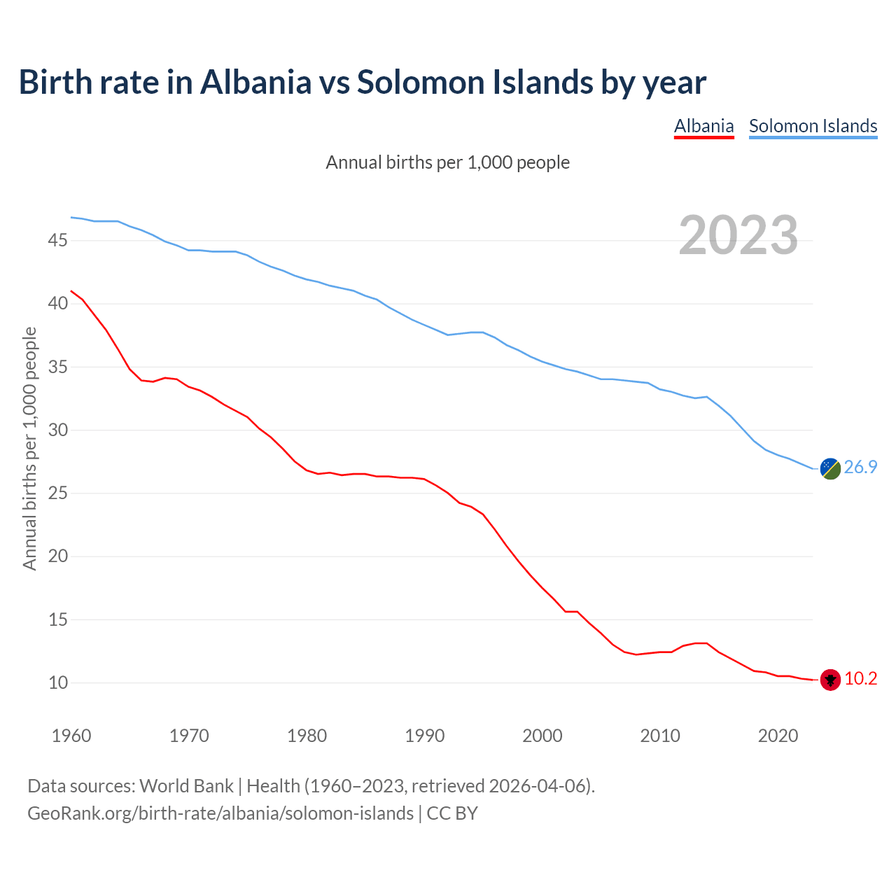 GeoRank.org/birth-rate/albania/solomon-islands | CC BY