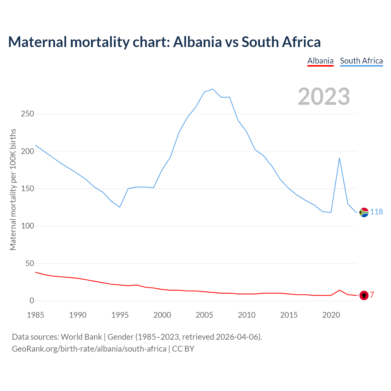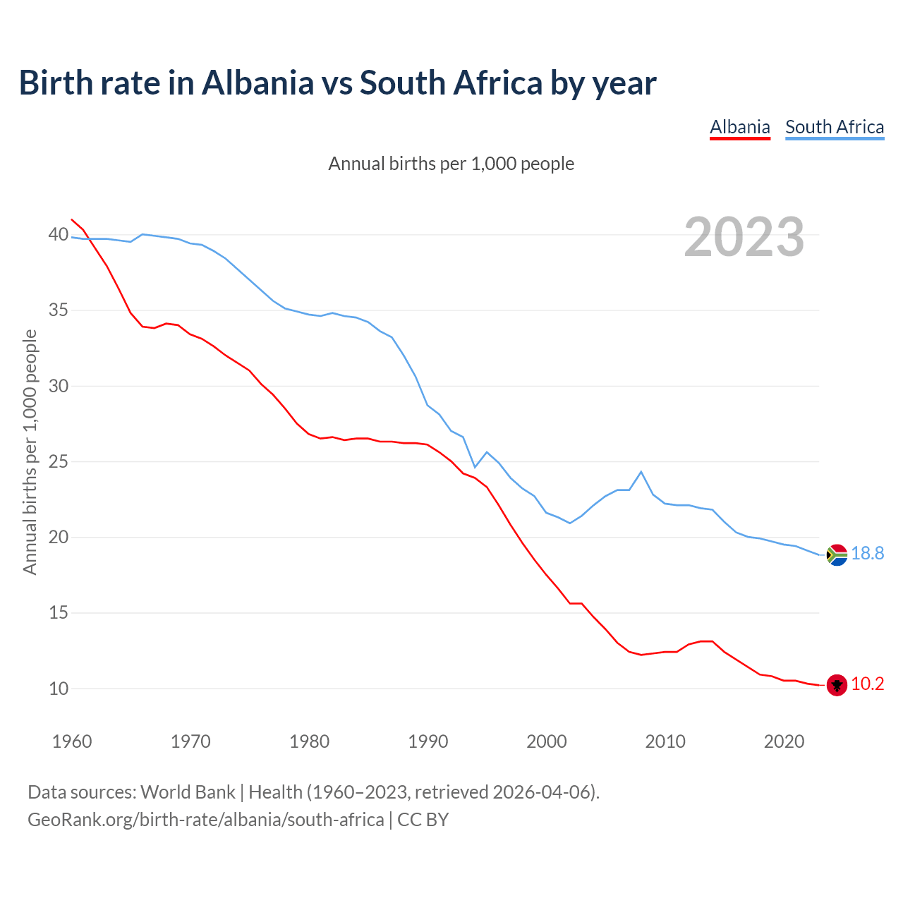 GeoRank.org/birth-rate/albania/south-africa | CC BY