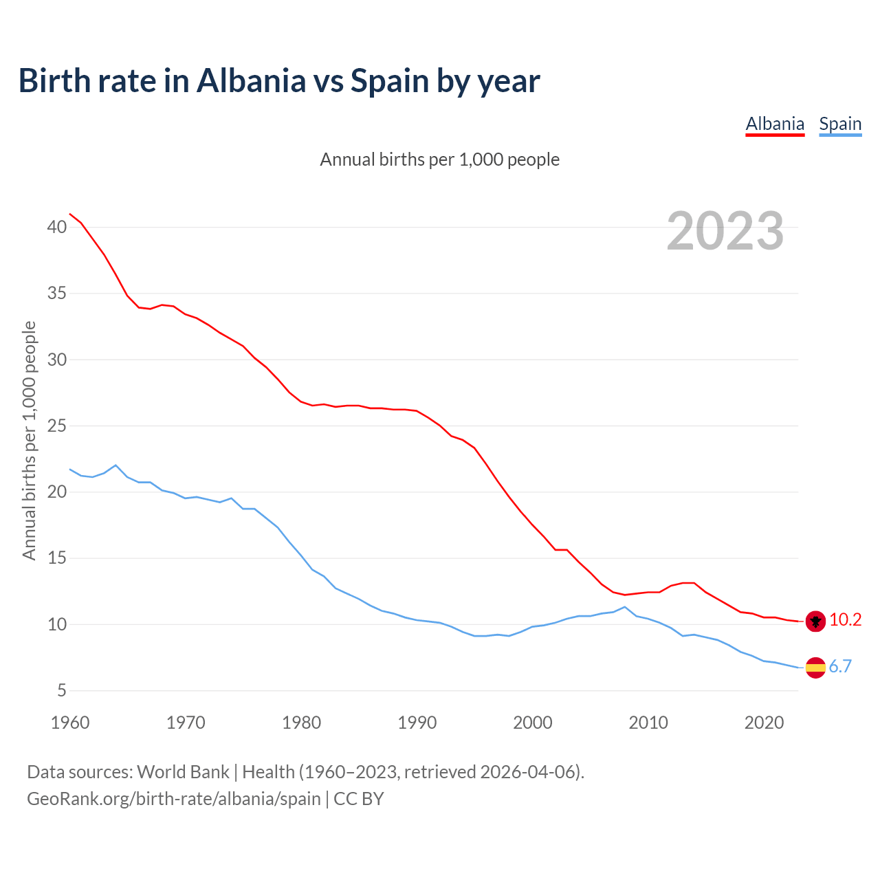 GeoRank.org/birth-rate/albania/spain | CC BY