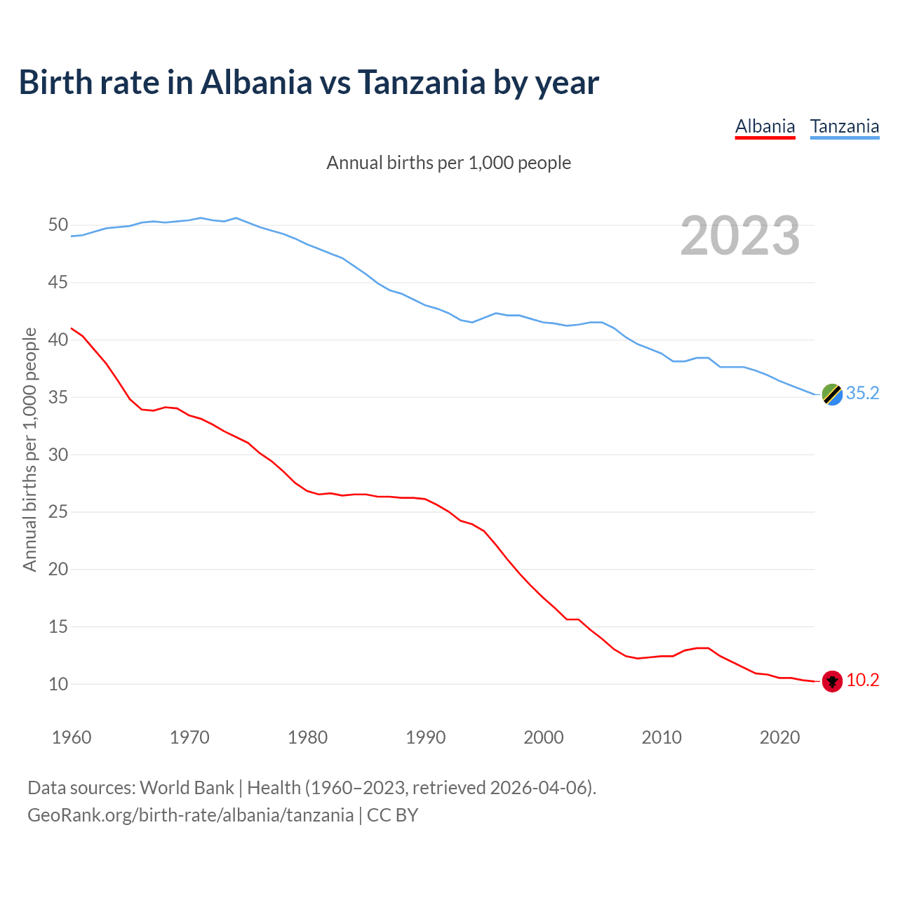 GeoRank.org/birth-rate/albania/tanzania | CC BY