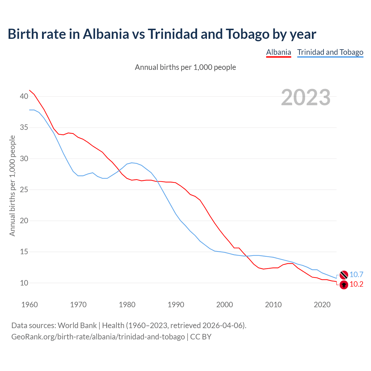GeoRank.org/birth-rate/albania/trinidad-and-tobago | CC BY