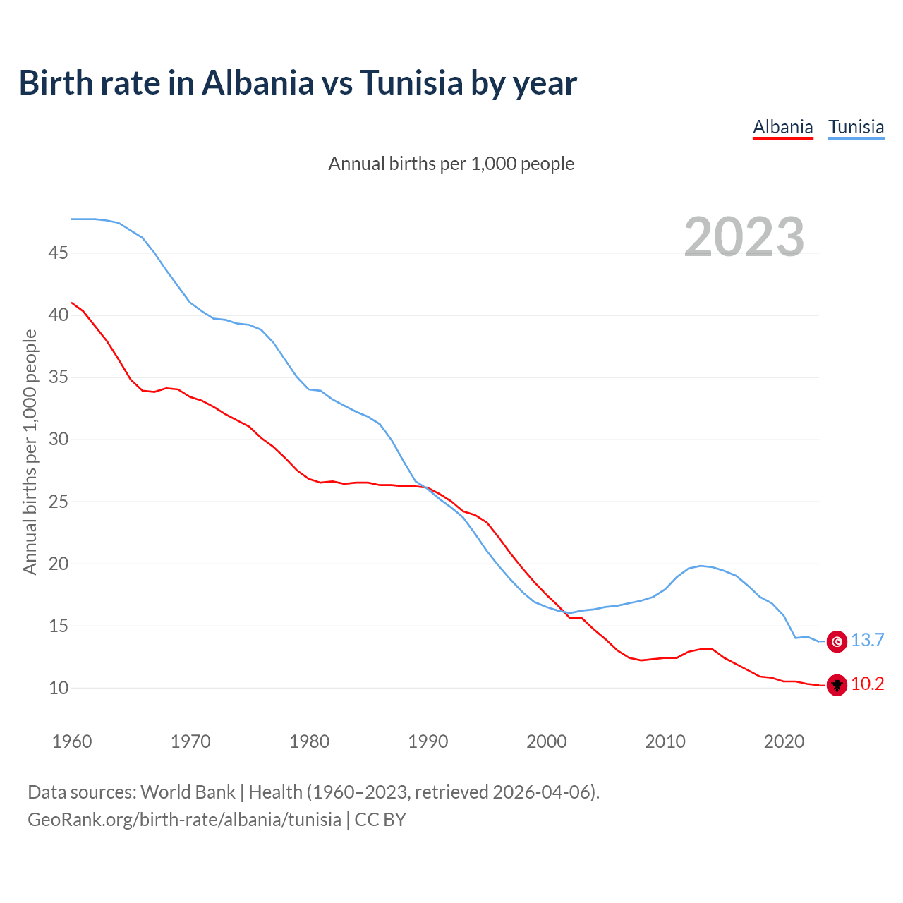 GeoRank.org/birth-rate/albania/tunisia | CC BY