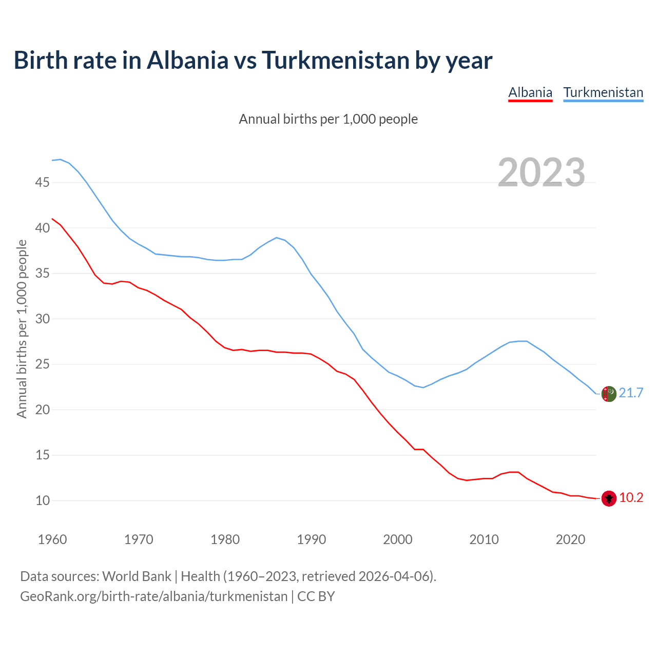 GeoRank.org/birth-rate/albania/turkmenistan | CC BY