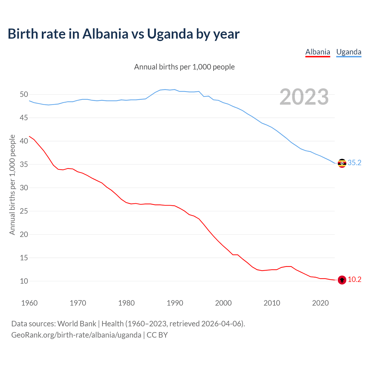 GeoRank.org/birth-rate/albania/uganda | CC BY