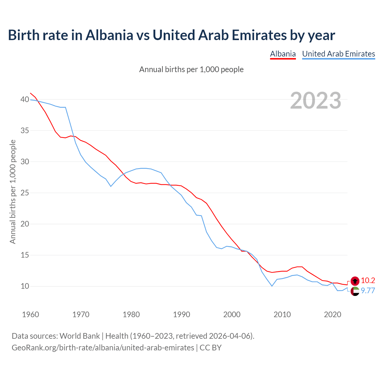 GeoRank.org/birth-rate/albania/united-arab-emirates | CC BY
