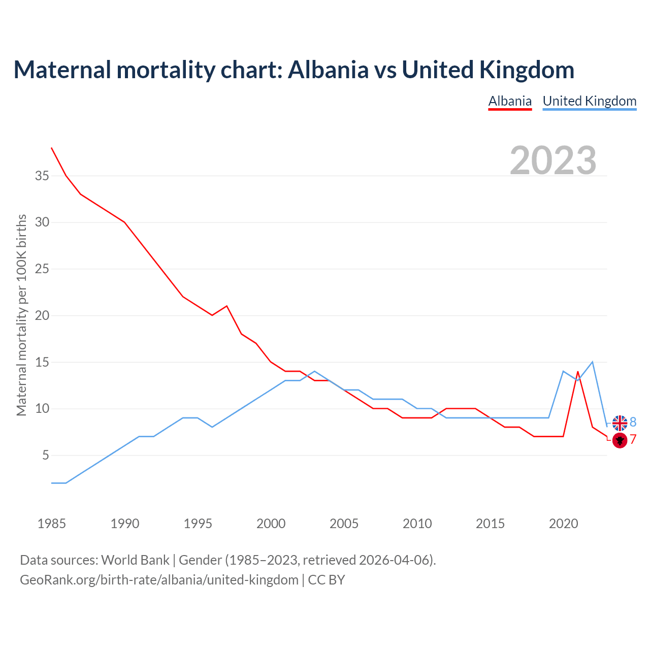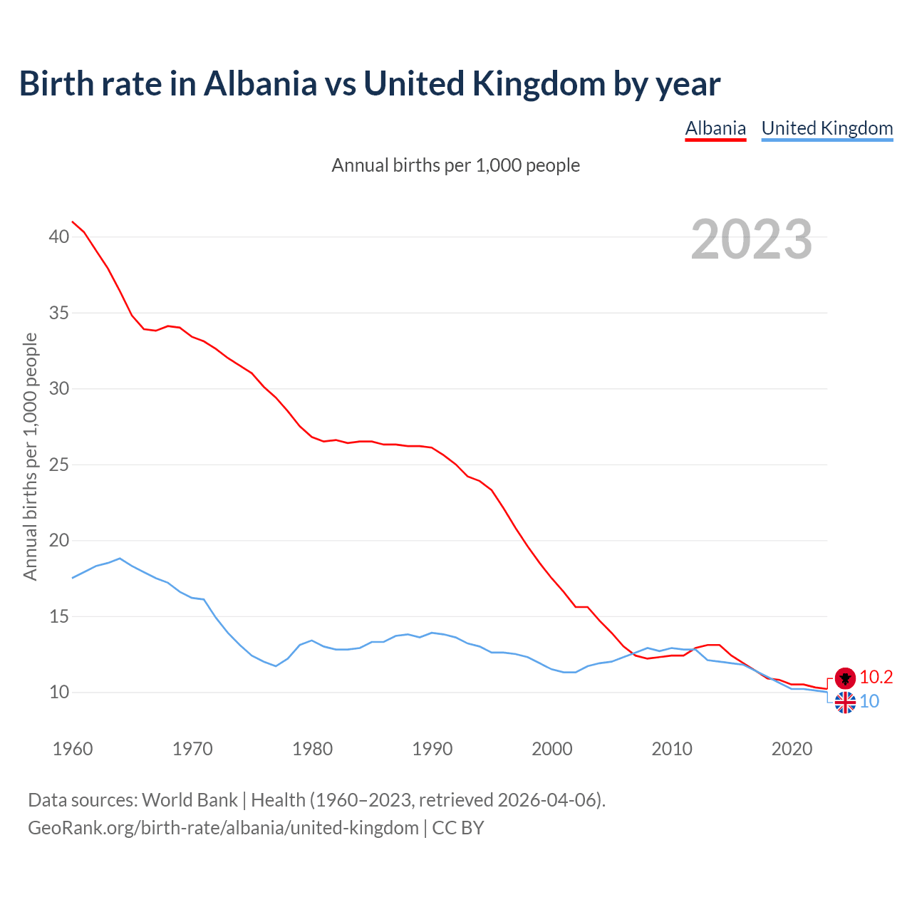 GeoRank.org/birth-rate/albania/united-kingdom | CC BY