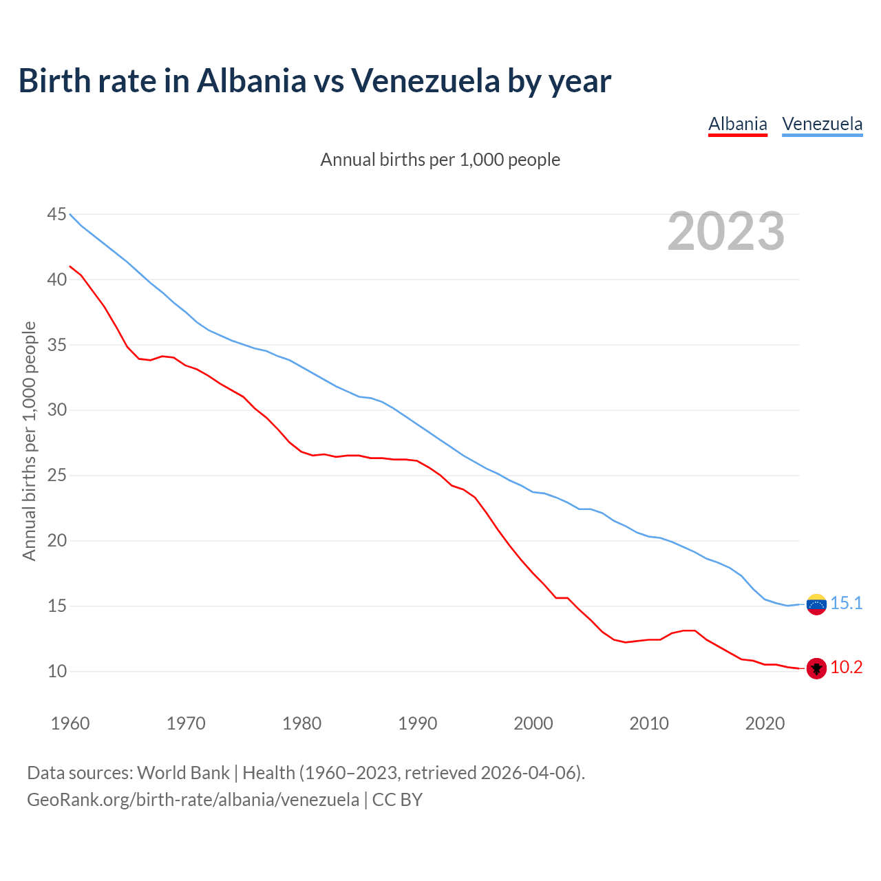 GeoRank.org/birth-rate/albania/venezuela | CC BY