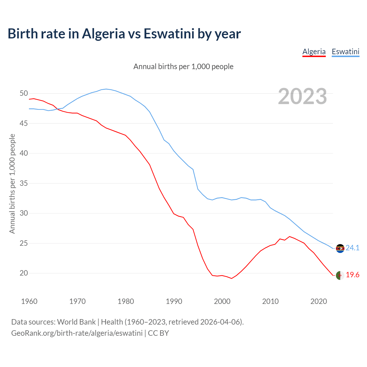 GeoRank.org/birth-rate/algeria/eswatini | CC BY
