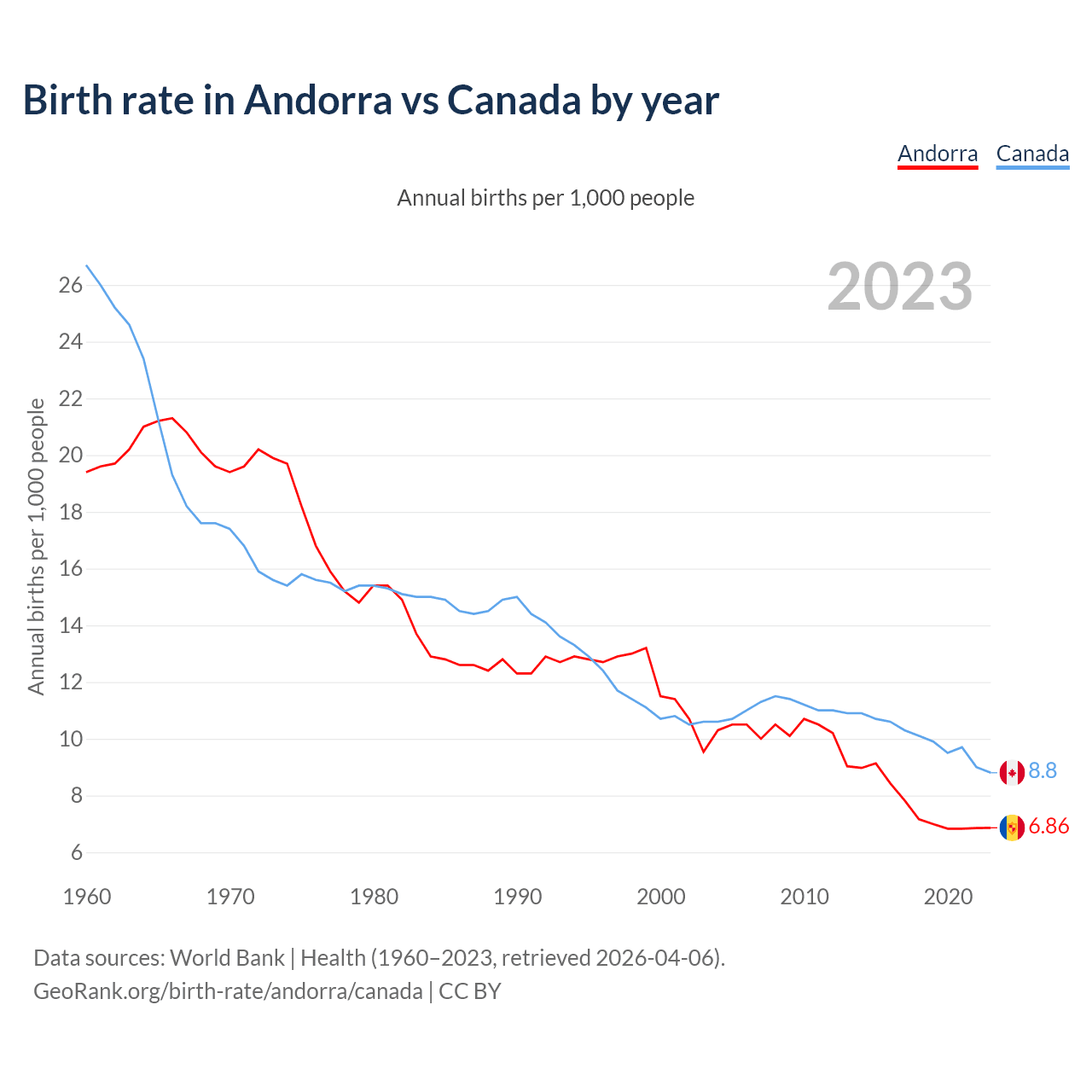 GeoRank.org/birth-rate/andorra/canada | CC BY