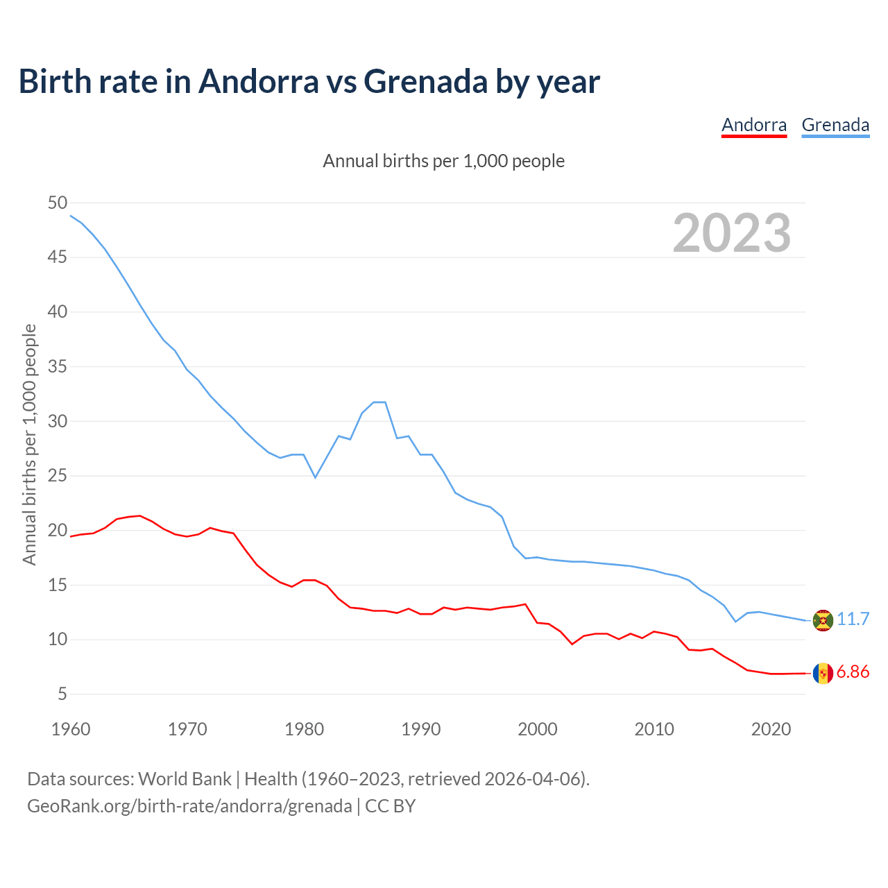 GeoRank.org/birth-rate/andorra/grenada | CC BY