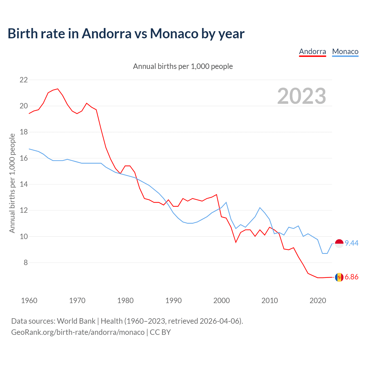 GeoRank.org/birth-rate/andorra/monaco | CC BY