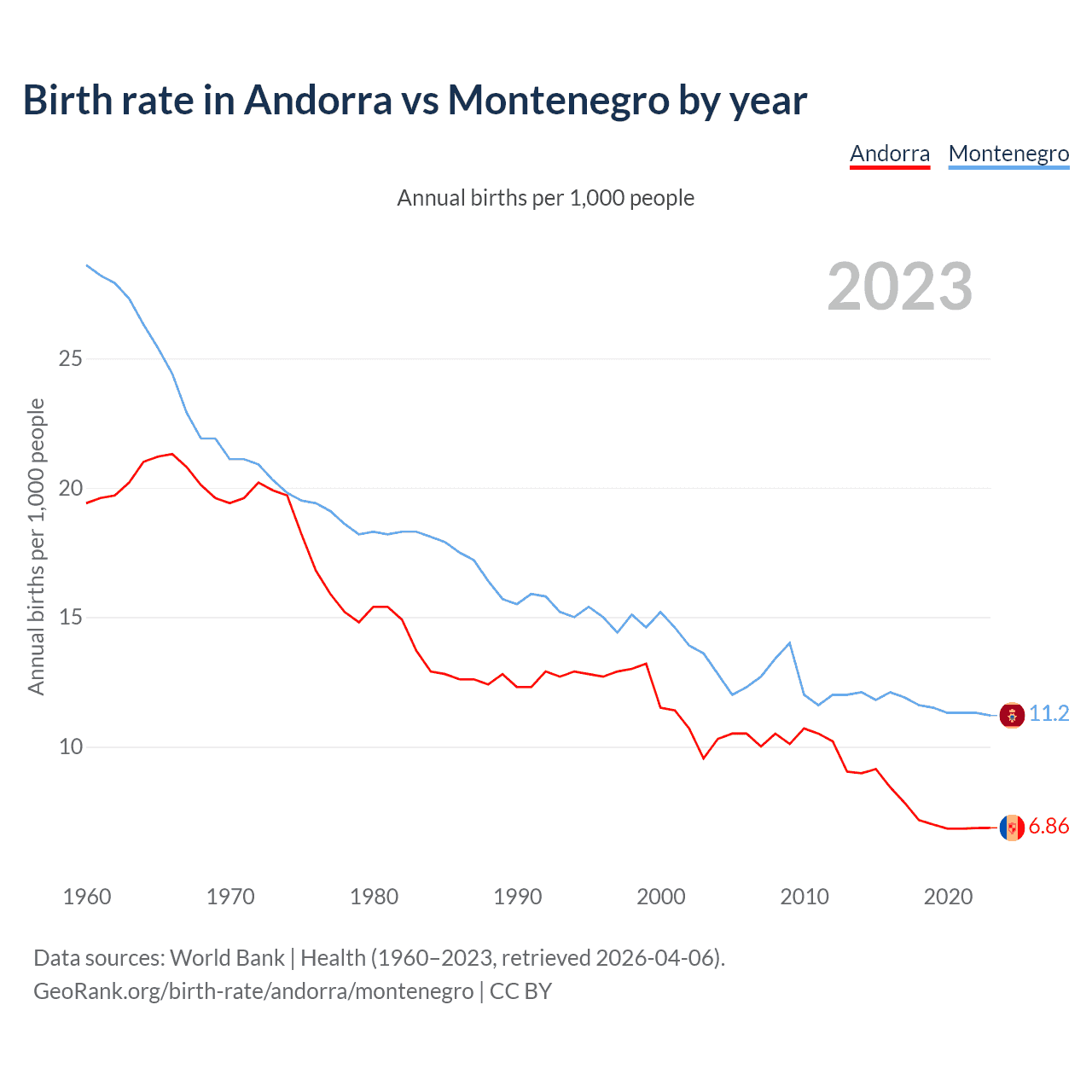 GeoRank.org/birth-rate/andorra/montenegro | CC BY