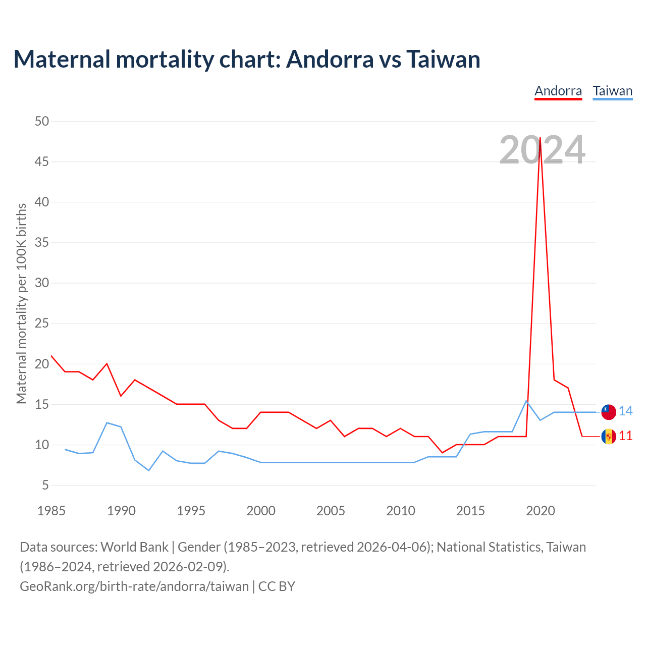 Maternal mortality chart: Andorra vs Taiwan